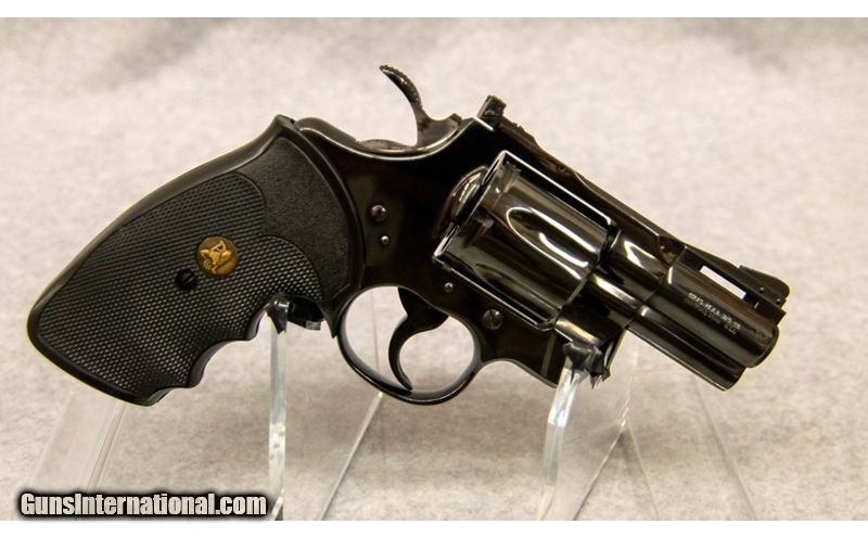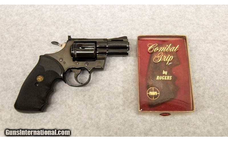 Description: Colt Python, chambered in .357 Magnum. Date of manufacture for this particular revolver is 1976. Bluing is in great shape with only a few scuffs here and there. Bore is in good shape and shiny. Comes with pachmyer grips attached but also comes with a set of Rogers combat grips .357 Magnum SOLD Chambers: .357 Magnum Metal Condition: Very Good Bore Condition: Very Good Barrels: 2 1/2' Sights: Adjustable Rear Item Location: Fort Mill, SC |
