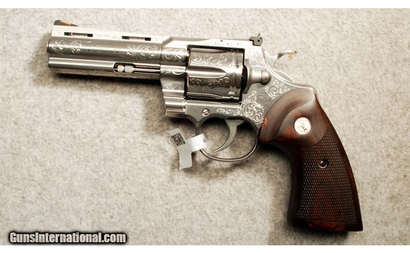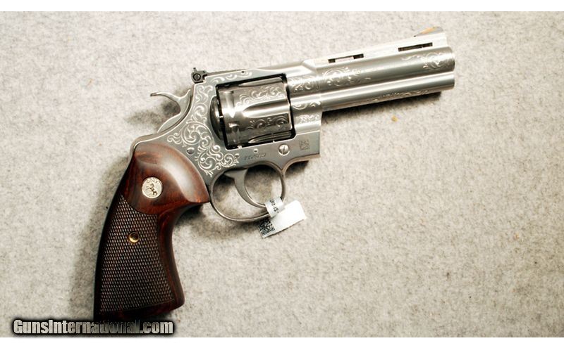 Description: For your consideration, a Colt Python chambered in .357 Magnum. The Colt Custom Shop has adorned the polished stainless finish with Armory Style C+ coverage cut engraving. Condition is new in box. Comes with case. .357 Magnum SOLD Metal Condition: Excellent Wood Condition: Excellent Bore Condition: Excellent Barrels: 4.25 inches Triggers: Serrated Face Weight: 2 lbs 12 oz Sights: Iron Sights Item Location: Scarborough, ME |