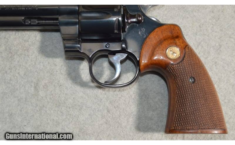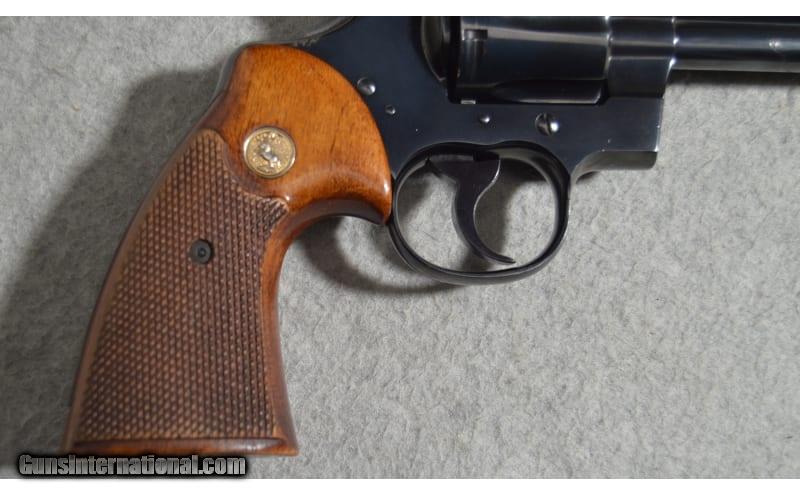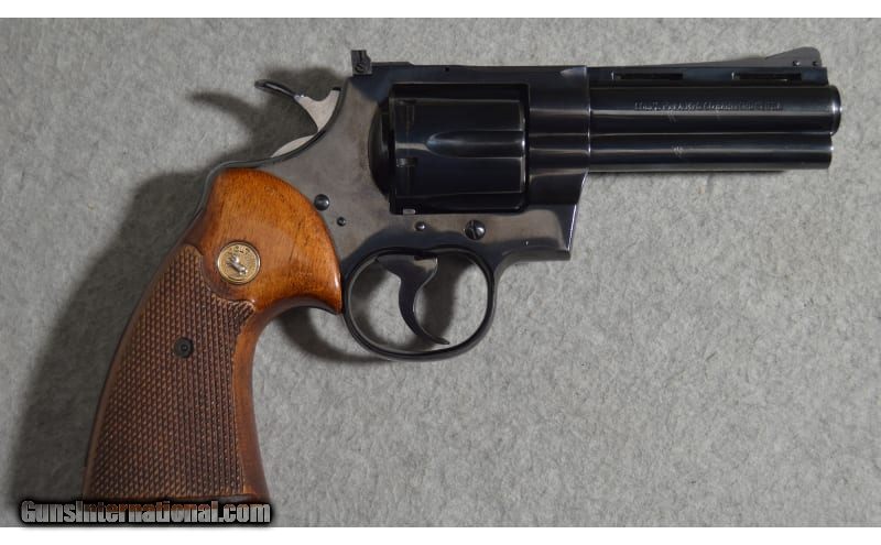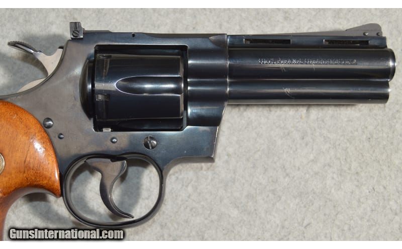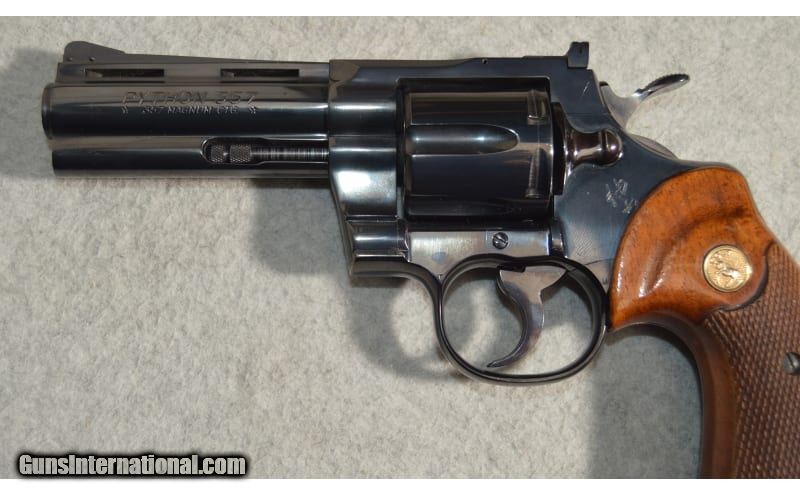 Description: Colt Python chambered in .357 Magnum. This double-action revolver features an adjustable rear sight and 4-inch barrel. The serial number (70623) indicates that the revolver was produced in 1967. .357 Magnum SOLD Metal Condition: Very Good with Minor Handling Marks Wood Condition: Very Good with Minor Wear Bore Condition: Bright and Clear with Good Rifling Barrels: 4 Inches Triggers: Double Action / Single Action Butt Pad: Checkered Walnut with Colt Medallions Weight: 2 lb 7 oz Sights: Adjustable Rear with Ramp Front Item Location: Fort Worth, TX |