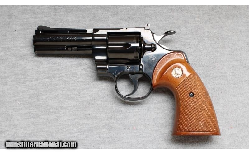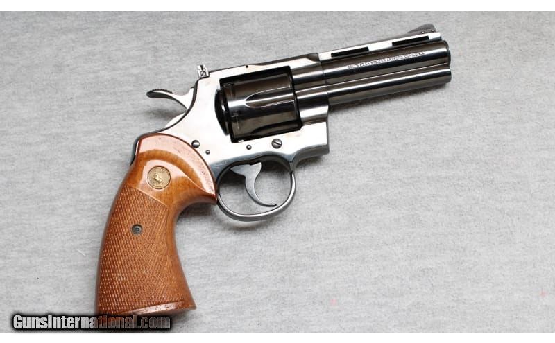 Description: Excellent, light wear, few small nicks and scratches. The classic Colt Python revolver manufactured in 1977. 4" ribbed barrel, adjustable sights, smooth action and trigger pull and factory wood grips. .357 Mag SOLD Chambers: Revolver Metal Condition: Excellent Wood Condition: Grips are excellent Bore Condition: Bright Barrels: 4 Triggers: Double and single action Butt Pad: Wood grips Sights: Adjustable sights Item Location: Kansas City, KS |