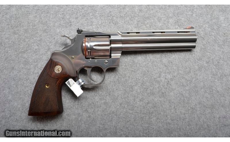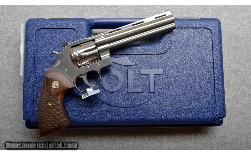 Description: Pre-owned Colt Python revolver chambered in .357 Magnum, 6 shot cylinder, stainless steel construction, interchangeable front sight and adjustable rear target sight, walnut target grip w/Colt medallion. LIKE NEW CONDITION. Serial# PY221738 .357 Magnum SOLD Metal Condition: Very Good Condition Wood Condition: Very Good Condition Bore Condition: Bright and shiny with excellent rifling Barrels: 6 Inches Weight: 46 oz. Sights: "Blade front, adjustable rear Item Location: Springfield, OR |