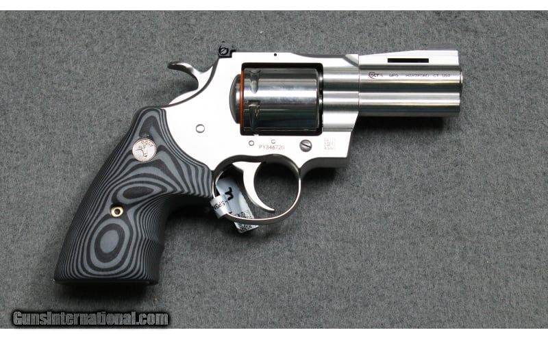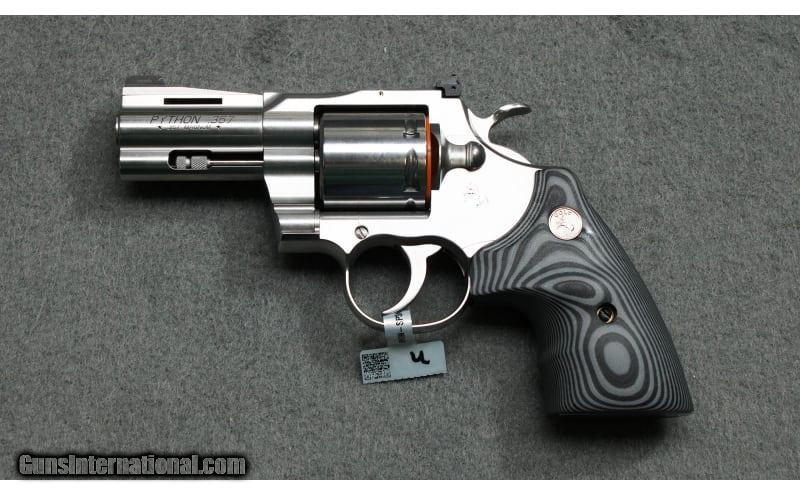 Description: This Colt Python revolver is chambered in .357 Magnum. This is a new-in-box item and comes with it's blue plastic COLT case as well as all paperwork and manuals. Firearm features adjustable rear sights, a 3" barrel, and laminate wood grips. .357 Magnum SOLD Metal Condition: New in box Wood Condition: New in box Bore Condition: New in box Barrels: 3 inches Item Location: Fort Worth, TX |