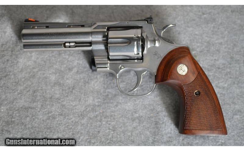 Description: The Python is back! Building on Colt's Snake Gun legacy, the legendary double-action revolver returns in stainless steel in 4.25" barrel length. The 2020 Python features modern stainless steel alloys and a re-designed rear sight. Thirty percent more steel beneath the rear adjustable target sight gives you a stronger revolver and more robust shooting experience. A recessed target crown, user-interchangeable front sight, and Walnut grip with the iconic Colt medallion make this a gun you'll want to shoot AND show off. The Python is chambered in .357 Magnum and also accommodates .38 Special cartridges. This pistol is in excellent like new condition, and comes with the factory box. .357 Magnum SOLD Chambers: 357 Magnum Metal Condition: Excellent Wood Condition: Excellent Bore Condition: Bright and shiny Barrels: 4" barrel Triggers: Crisp Weight: lbs. Sights: Iron sights Item Location: Huntsville, AL |