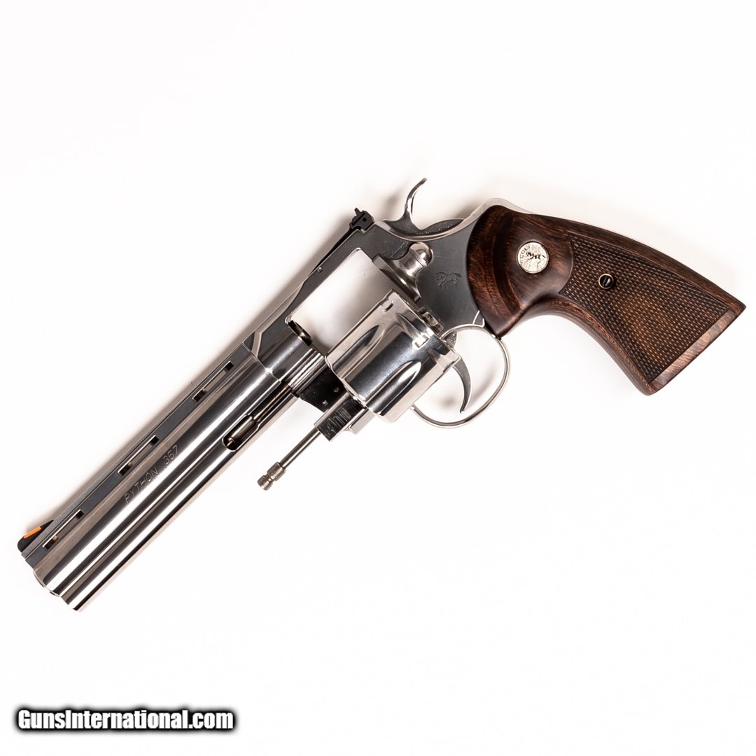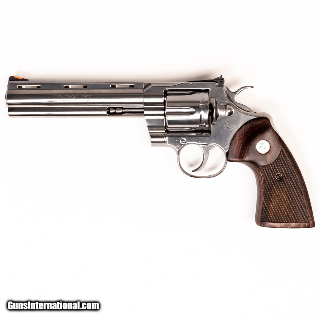 Description: Guns Listing ID: 521771 The Colt Python is described by many as the finest production revolver ever made. Although popular, the Python was discontinued in 1999 after more than four decades of production. It was recently re-introduced in 2020. This .357 Mag handgun is widely considered to be one of the kings of the wheel guns. The original case with the manual included. SOLD Manufacturer: COLT Model: PYTHON .357 Caliber Info: .357 MAG Condition: Used - Certified Barrels: 6 BARREL Finish: STAINLESS |