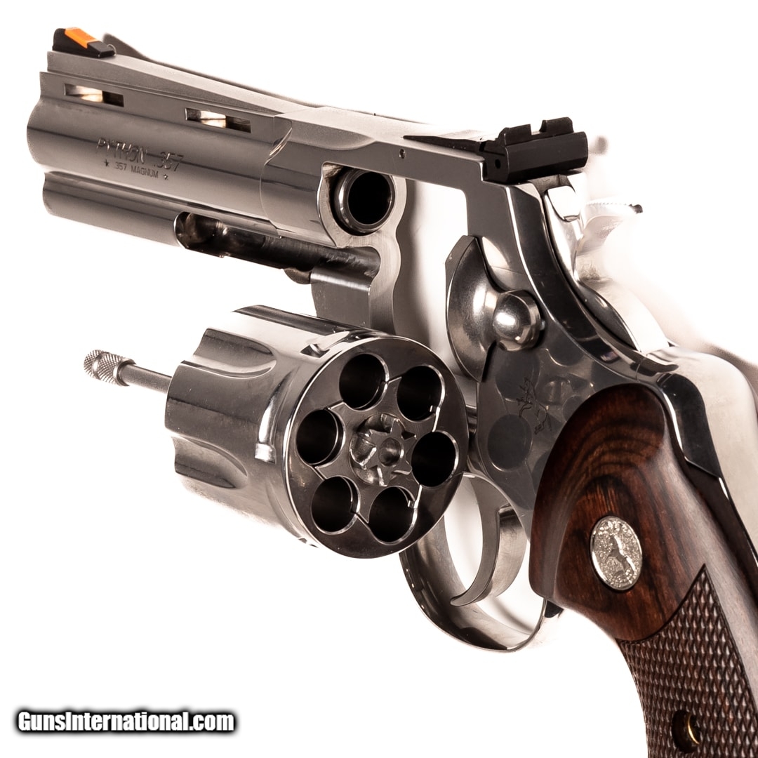 Description: Guns Listing ID: 684264 A classically designed revolver with a unique look and ultimate reliability, this Colt Python offers six rounds of 357 Mag. The Python is described by some as the finest production revolver ever made. Although popular, the Python was discontinued in 1999 after more than four decades of production. It is the weapon of choice for The Walking Dead’s cop turned zombie killer, Rick Grimes, and has made an appearance in countless movies and television shows over the last five decades. This handgun features the original case with the manual. Get the best bang for your buck when you get a Certified Used Firearm . When you see the Certified Used stamp on any of our firearms, you can be confident that you’re getting exactly what you want – a gun only in very good to excellent condition and held to the highest quality standard. All Certified Used Guns come with a ‘no questions asked’ return policy . PLUS, ALL CERTIFIED USED GUNS SHIP FREE! SOLD Manufacturer: COLT Model: PYTHON .357 Caliber Info: .357 MAG Condition: Used - Certified Barrels: 4.3 barrel Finish: STAINLESS |