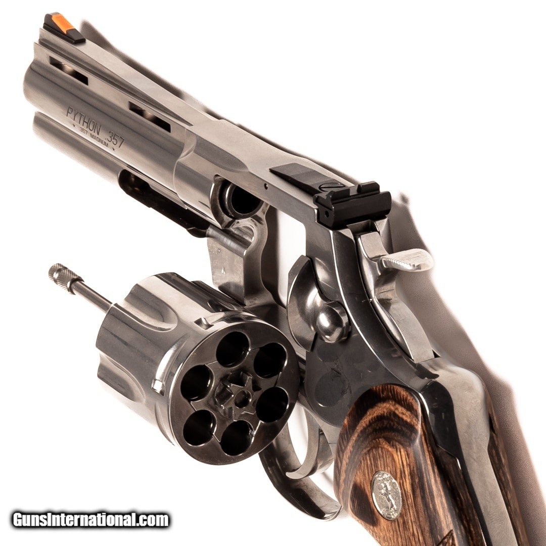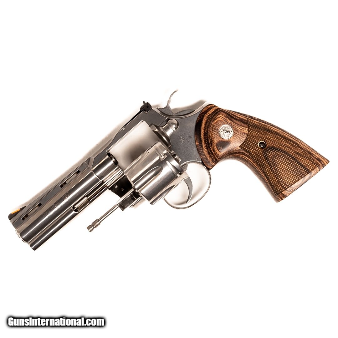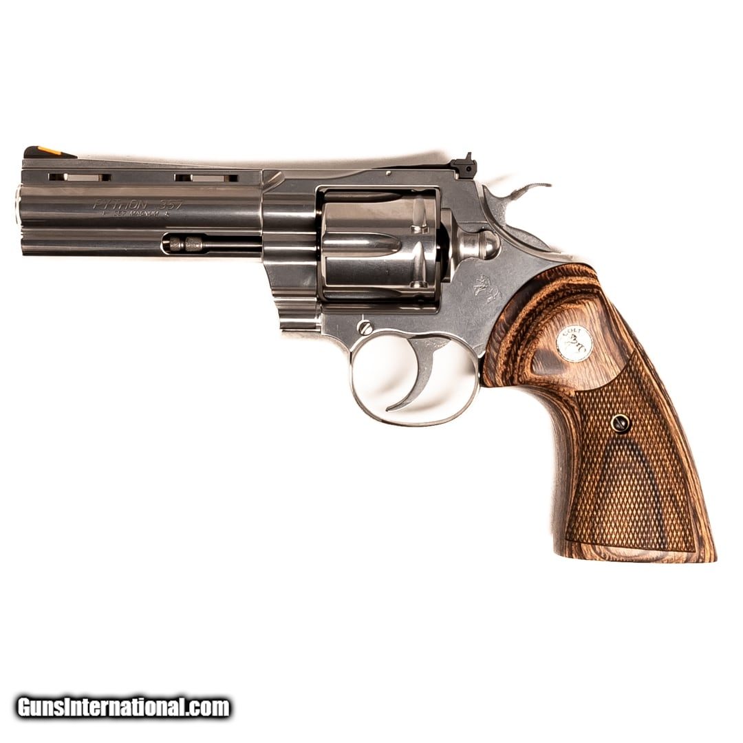 Description: Guns Listing ID: 818061 A classically designed revolver with a unique look and ultimate reliability, the Colt Python offers six rounds of 357 Mag. The Python is described by some as the finest production revolver ever made and has made an appearance in countless movies and television shows. Although popular, it was discontinued in 1999 after more than four decades of production, but recently was brought back into production again. This Python 357 includes the original case and manual. Serial number: PY019578 Get the best bang for your buck when you get a Certified Used Firearm . When you see the Certified Used stamp on any of our firearms, you can be confident that you’re getting exactly what you want – a gun only in very good to excellent condition and held to the highest quality standard. All Certified Used Guns come with a ‘no questions asked’ return policy . PLUS, ALL CERTIFIED USED GUNS SHIP FREE! SOLD Manufacturer: COLT Model: PYTHON 357 Caliber Info: .357 MAG Condition: Used - Certified Barrels: 4 BARREL Finish: STAINLESS |
