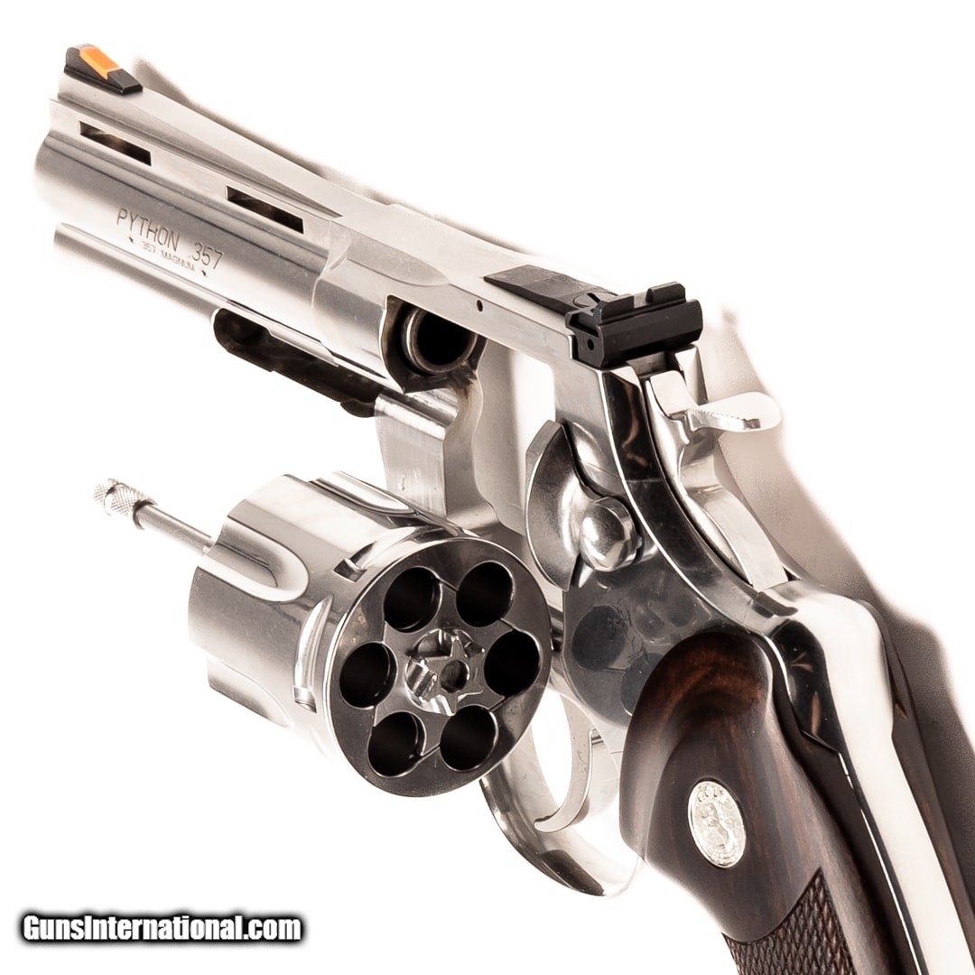 Description: Guns Listing ID: 855608 Building on Colt’s Snake Gun legacy, the legendary double-action revolver returns in stainless steel in 4.25” and 6” barrel lengths. The 2020 Python features modern stainless steel alloys and a re-designed rear sight. Thirty percent more steel beneath the rear adjustable target sight gives you a stronger revolver and more robust shooting experience. A recessed target crown, user-interchangeable front sight, and Walnut grip with the iconic Colt medallion make this a gun you’ll want to shoot AND show off. The Python is chambered in .357 Magnum and also accommodates 38 Special cartridges. This listing is a for a modern production Colt Python with a 4” barrel. The original case is included. Get the best bang for your buck when you get a Certified Used Firearm . When you see the Certified Used stamp on any of our firearms, you can be confident that you’re getting exactly what you want – a gun only in very good to excellent condition and held to the highest quality standard. All Certified Used Guns come with a ‘no questions asked’ return policy . PLUS, ALL CERTIFIED USED GUNS SHIP FREE! SOLD Manufacturer: COLT Model: PYTHON 357 Caliber Info: .357 MAG Condition: Used - Certified Barrels: 4 BARREL Finish: STAINLESS |