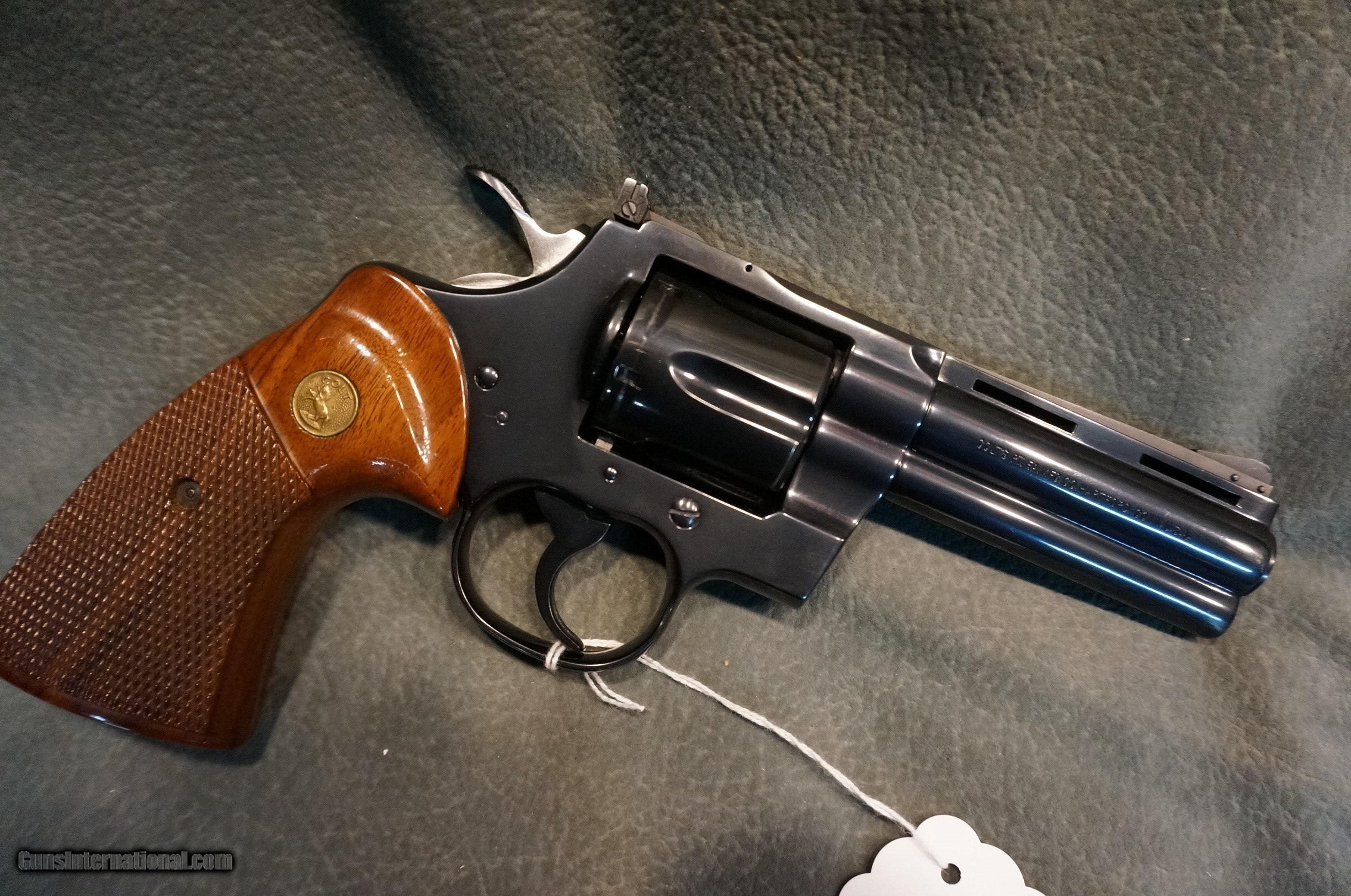 Description: Colt Python 357Mag 4" barrel,serial #79345E,98% with a manual and a plastic Colt box. We buy, sell, consign and trade new and used firearms. This is our 43rd year in business. We offer 90 day layaways with 20% down. No return on layaways. Firearms will need to be transferred through a FFL dealer. Prices reflect a cash discount. There will be 3% added to credit card sales. We trade for gold and silver. Gun collections wanted for cash. THANK YOU! SOLD |