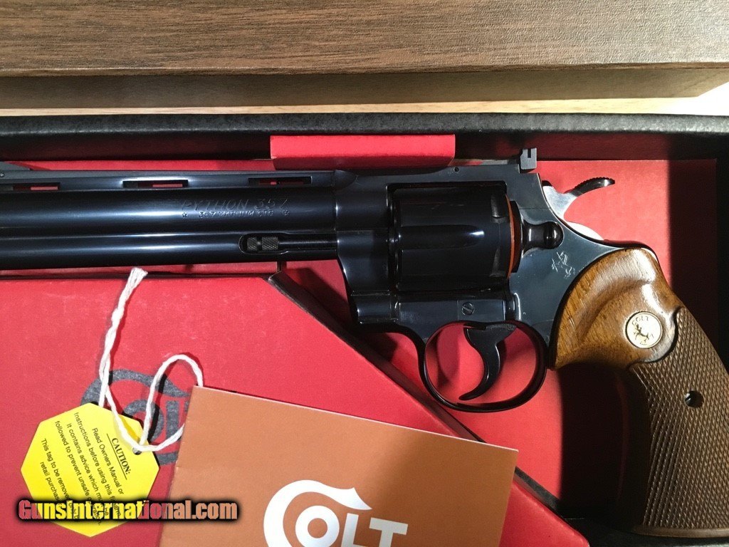 Description: *** Sale Pending *** Nice condition Colt Python with little evidence of ever being fired. 99.9% blue. Perfect grip with no chips or cracks. Included is a "wood grain two-piece box" which is in perfect condition. The box is the correct type for the gun and year of manufacture. The box maybe a repro. It would be almost impossible to keep a box in this condition for 50 years. You are buying the gun. I am giving you the box free. This gun can ship to a C&R FFL in January 2019. If you are a C&R FFL buy now and I will ship it to you January 2nd, 2019. Must be in a state that allows a C&R FFL to purchase direct. Some states, such as New Jersey, do not permit a C&R FFL receive firearm shipments. Shipping $25 for lower 48 states. All postage and insurance will be incurred by purchaser. No face to face transactions. I do not have a retail business location. PA residents include 6% sales tax or furnish resale certificate. Can ship to a C&R FFL in 2019. Payment by Money Order or check. I have 100% positive feedback on GA. You can buy with confidence. SOLD Manufacturer: Colt Model: Python Caliber Info: .357 Mag Condition: Mint Barrels: 6 Finish: Blue Manufacture Date: 1968 |