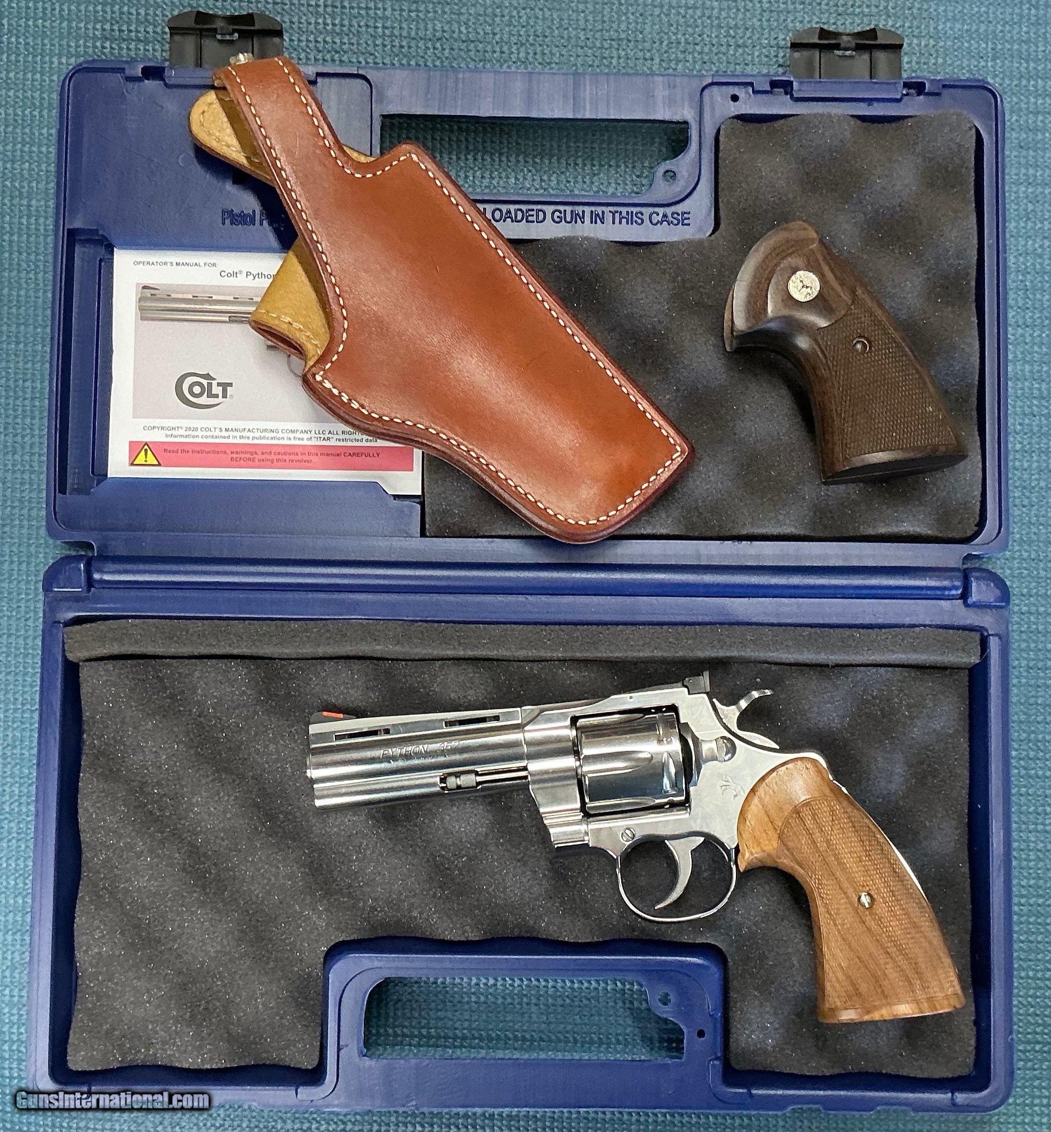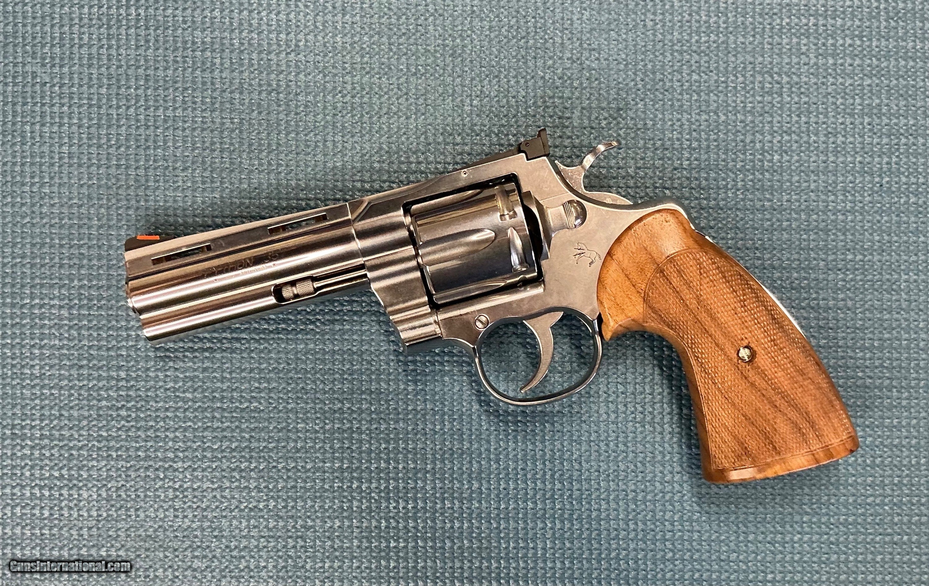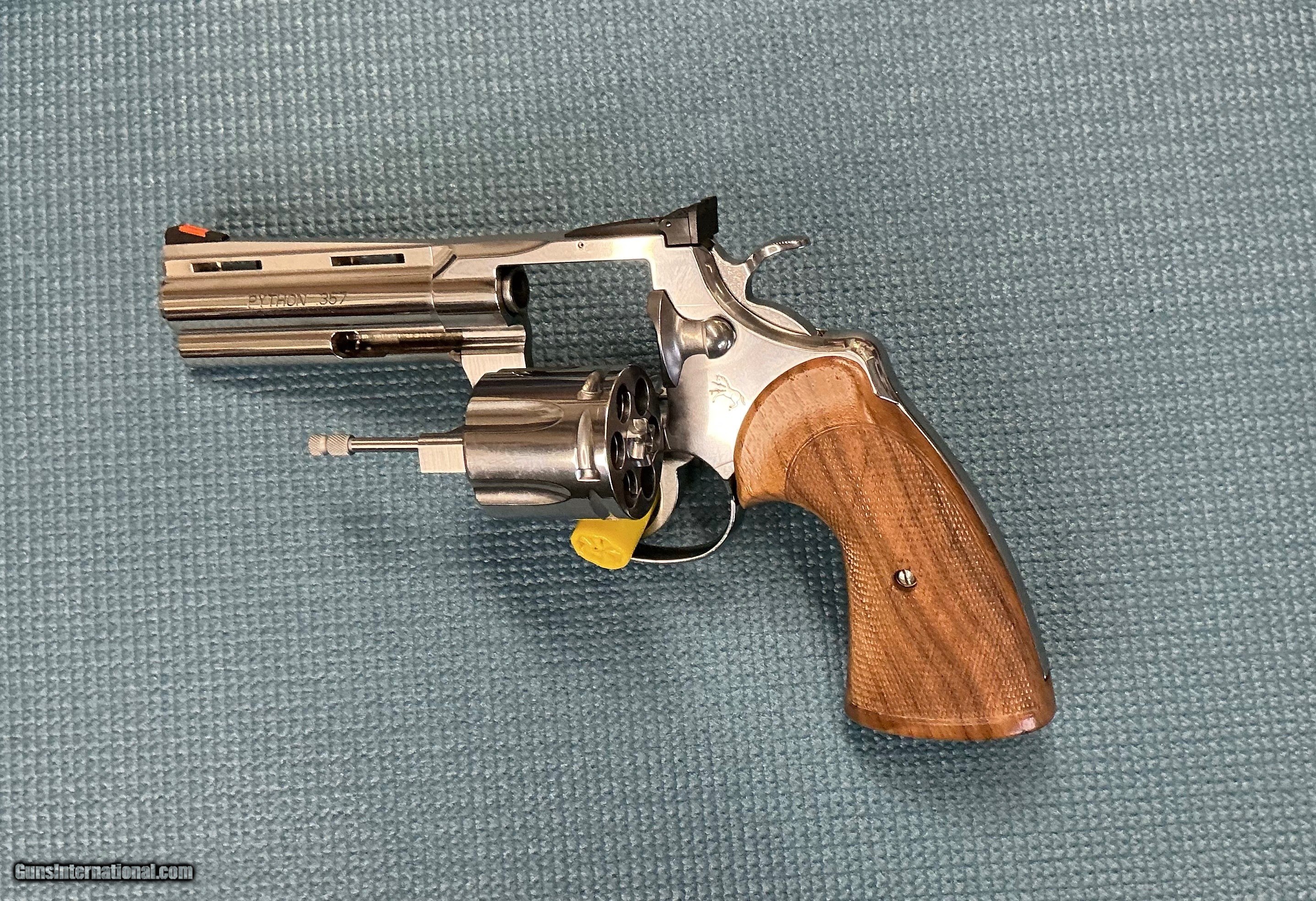 Description: Colt Python .357 Magnum, 4 inch barrel. This gun is NEW in the box. Never fired. This gun was tuned by Heffron Precision. New Walnut Grips checkered by Frank Flanvin. Also includes the stock grips. Wilson Combat Rear Sight. Also comes with a Lined El Paso Holster and the original Colt box with all the factory paperwork. Insured shipping wil be $125.00 to the Continental United States Handgun Caliber: .357 Magnum Price: $1,995.00 Shipping: $75.00 Contact Seller |