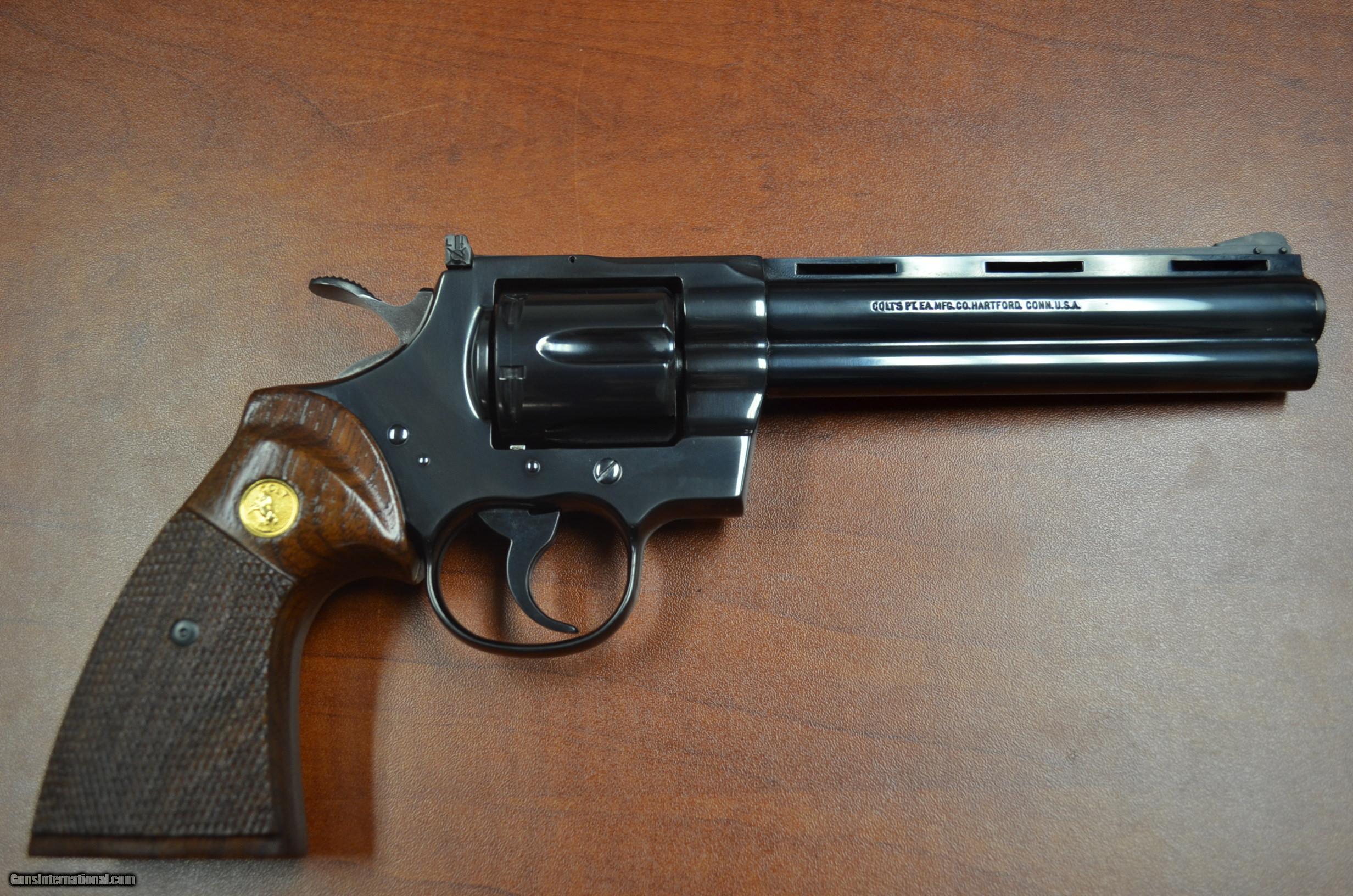Description: Colt Python 357Mag 6” barrel- this revolver is a Colt Python chambered in 357 mag and made in 1982. The revolver has blued finish and Colt wood grips. The revolver has adjustable rear sight. Revolver has very little wear and minor remnants of white sight paint on front sight. The revolver has a bright bore and strong grooves. Please call and ask for Tom in sales at 610.258.5500 Tuesday through Friday 10am-5pm. All guns subject to sale in our retail location. SOLD Manufacturer: Colt Model: Python Caliber Info: 357 Mag Bore: bright Manufacture Date: 1982 |