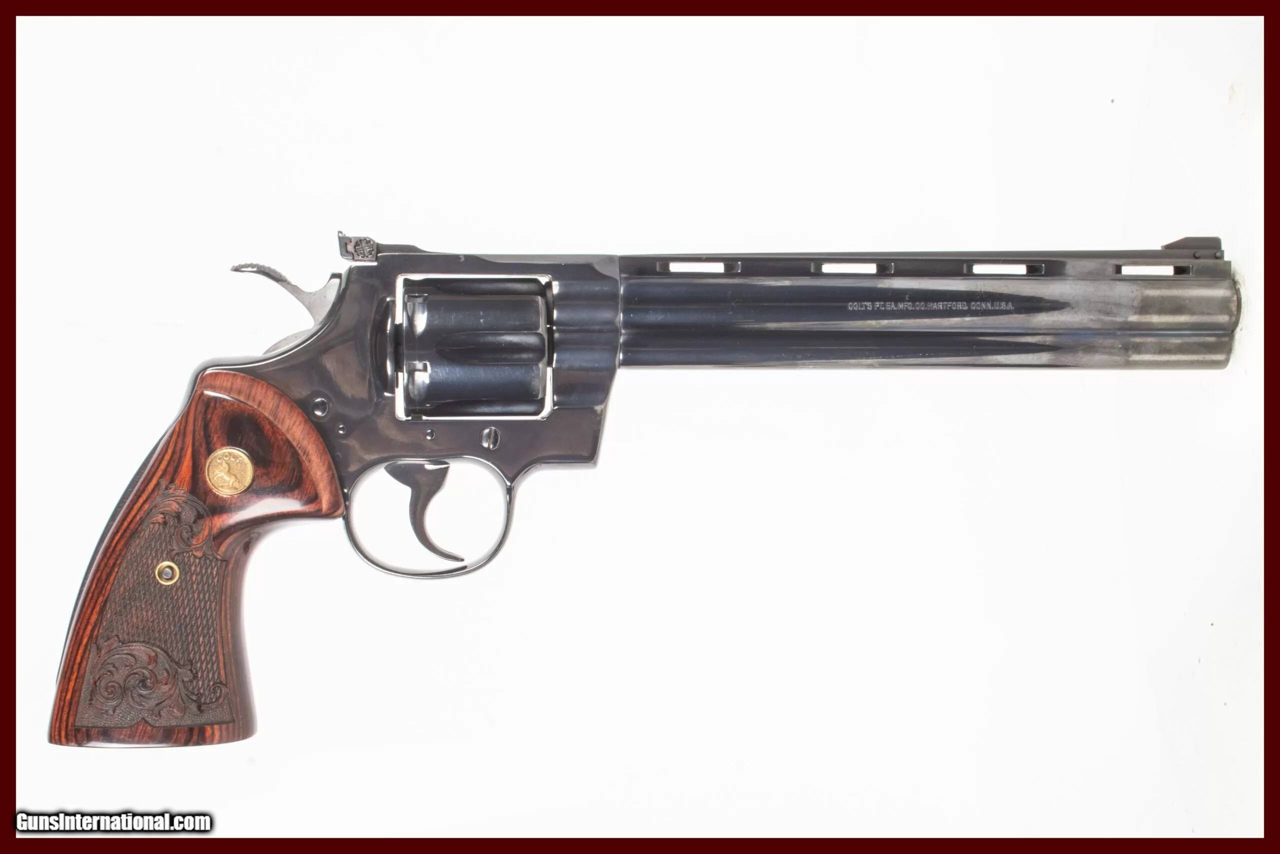 Description: Colt Python chambered for .357 Magnum with eight-inch barrel, blued steel, adjustable sights, six-shot fluted cylinder, and wood grips with Colt medallions. Action appears to be in excellent working order with bright, sharply rifled bore. The NRA grading condition for this USED firearm is Good. Dury’s Lifetime Warranty: All firearms purchased from Dury’s Gun Shop, NEW or USED, are covered by a lifetime warranty. We will repair or replace, at our discretion, any firearm purchased from Dury’s Gun Shop, Inc. for as long as it is owned by the purchaser. This warranty is not transferable. WE BUY GUNS! NO COLLECTION TOO BIG OR SMALL FOR OUR GUNS INTERNATIONAL CUSTOMERS ALL OF OUR FIREARMS CAN BE PURCHASED DIRECTLY FROM OUR DURY’S GUNS SITE ! SOLD Manufacturer: Colt Model: Python Caliber Info: 357 MAG Barrels: 8inches |