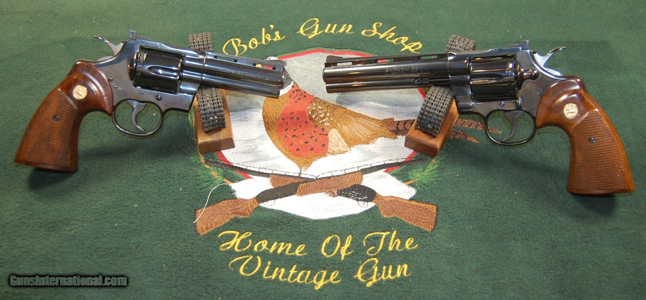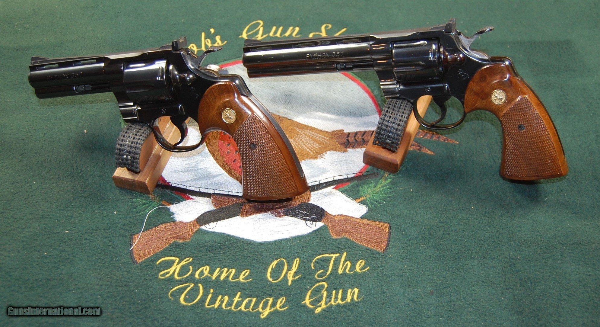 Description: GI # MANF MODEL CALIBER SN BARREL MANF DATE PRICE 474A COLT PYTHON 357 MAG 55631E 4.00” Blued 1966 $3299 475A COLT PYTHON 357 MAG V27332 6.00” Blued 1978 $3000 These firearms can be bought seperatly. Both are very clean and in excellent condition. Handgun Caliber: .357 Magnum Manufacturer: COLT Model: Python Condition: Excellent Price: $6,299.00 Contact Seller |