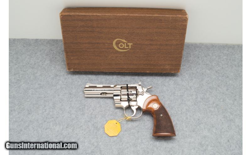 Description: Used. Appears un-fired! SOLD Manufacturer: Circa: 1969 Caliber Info: .357 Mag. Metal Condition: Excellent Wood Condition: Excellent Bore Condition: Clean and sharp Barrels: 4 Triggers: Grooved, steel Stock: Raised checkered walnut with Colt Medallions Weight: 38 oz. Sights: Adjustable target rear; blade front Extras: Factory box. Item Location: Billings, MT |