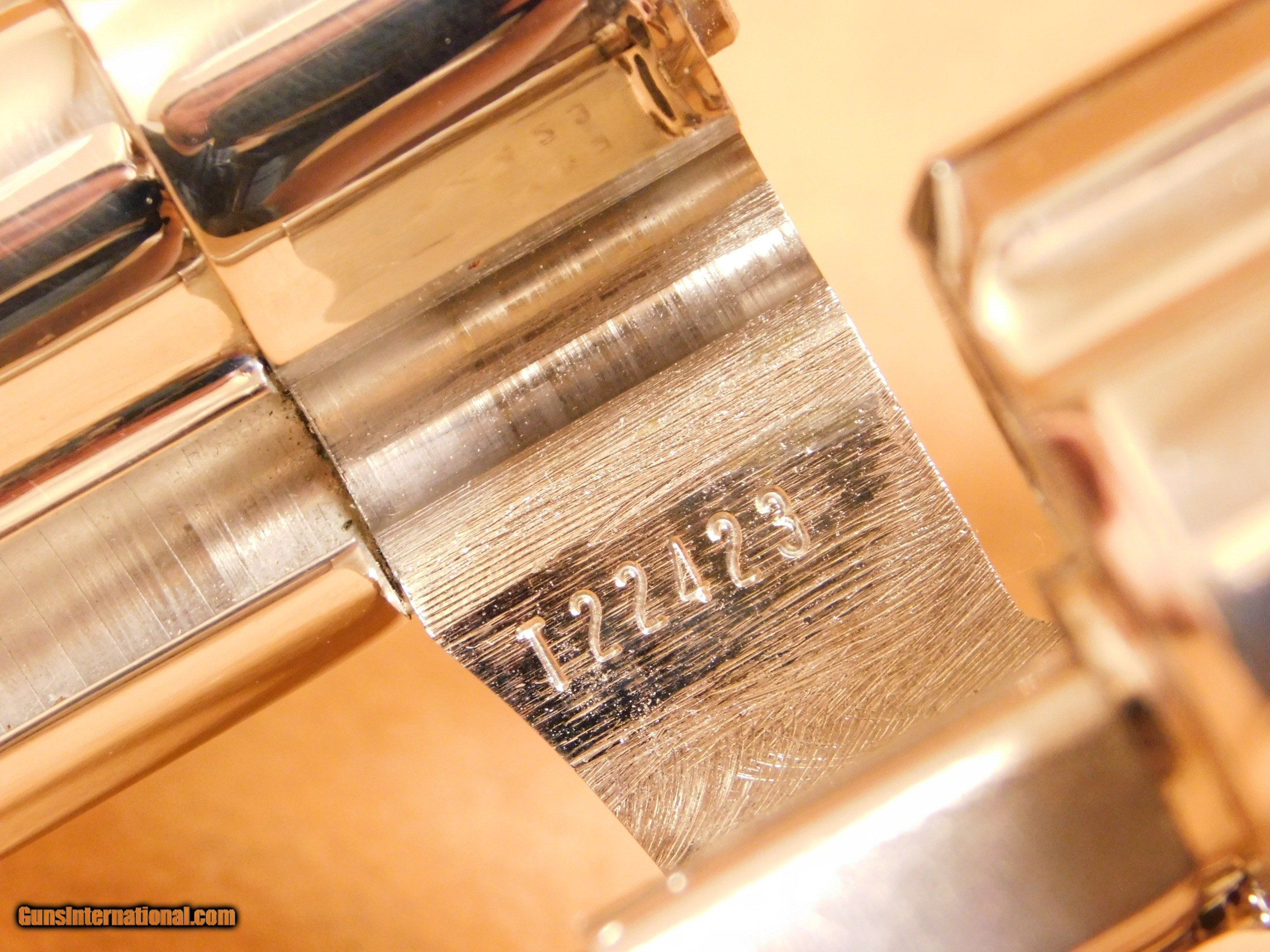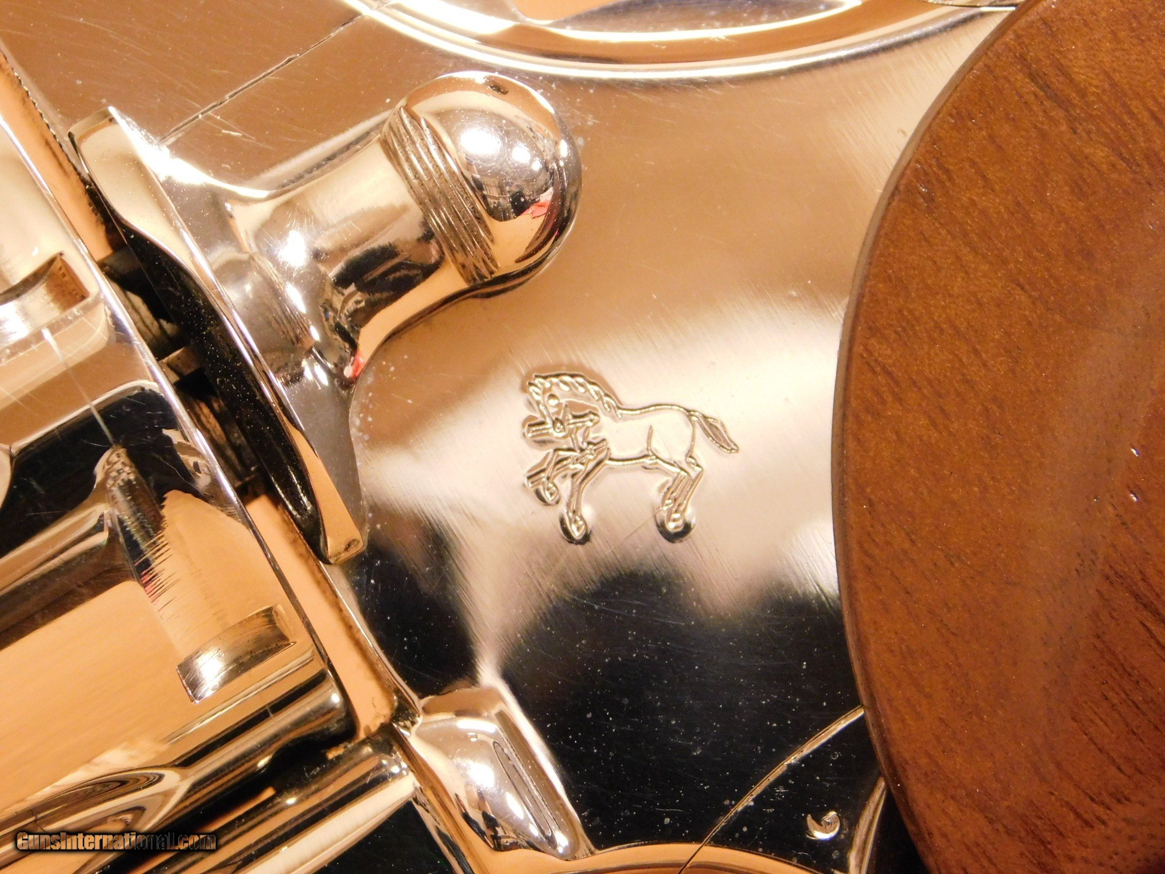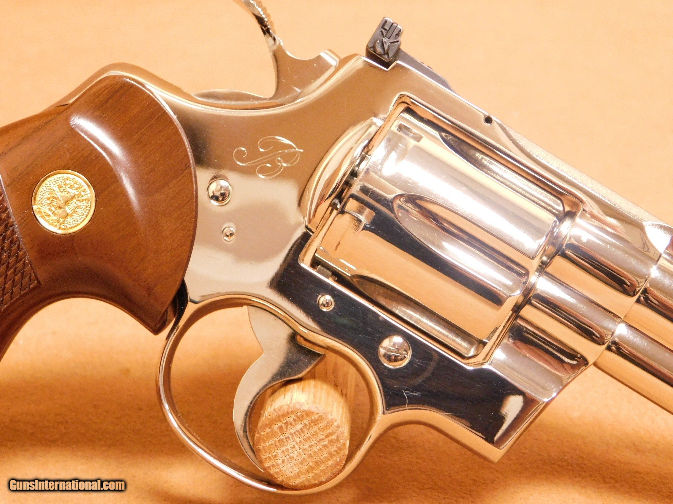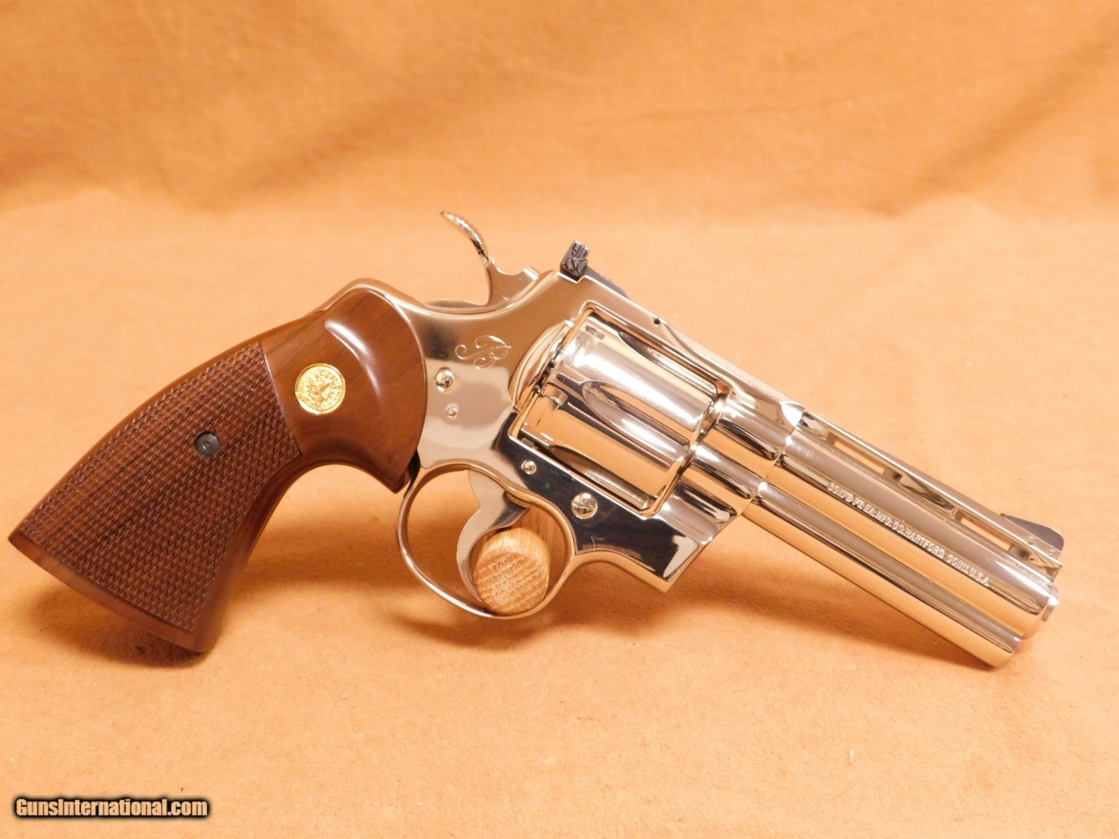 Description: This is a nice, unfired, like new Colt Python. It has a very shiny nickel finish and a 4-inch barrel. According to Colt, this revolver was made in 1983. A tastefully done "B" has been engraved on the right side of the receiver. The grips are mint and undamaged. All items are also available for sale in our brick & mortar store and are subject to prior sale. Think long, think wrong. We are always buying unique and collectible single firearms and collections. Please give us a call at 859-278-8370 to discuss what you have available. We also offer free appraisals and guarantee TOP DOLLAR PAID for your unique and collectible firearms. Payment On firearms, we typically only accept credit cards or money orders/cashier's checks.