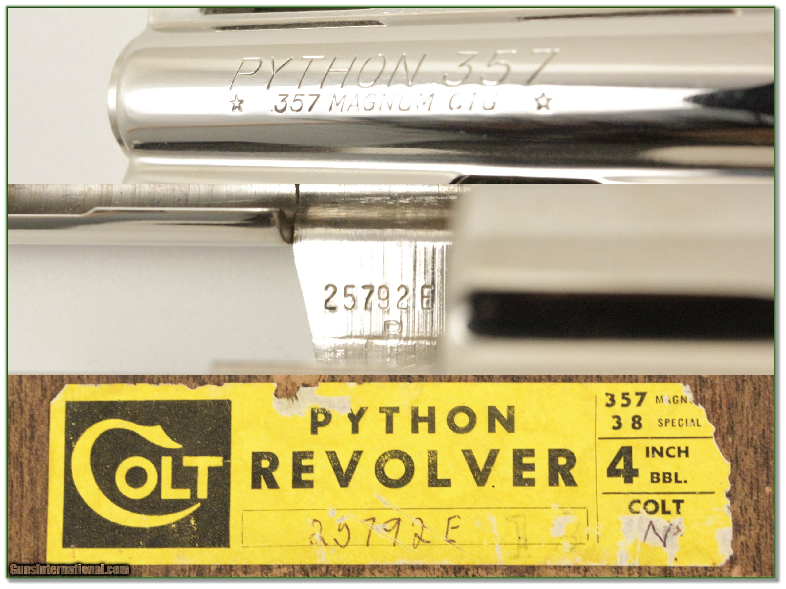 Description: Collectors, this is a beautiful Colt 4in with hard to find polished nickel. It was made in 1976 and comes as seen in original box. It is in top collector condition. I am selling this one on consignment and as such, lay-a-way can’t be used. It does of course have the standard 3-day inspection. Shipping and insurance is $29. Please email me with any questions or larger pictures. (Consign your quality firearms with Shooting Investments for only 10%! Let me know if you have any you would like to sell!) 17-0584 Payment: Payment is by Money Order, Cashiers Check or Personal Check. I can now also accept MasterCard and Visa with a 3% convenience fee. PayPal can be used for some items but never firearms. Please let us know if you would like to pay via PayPal. Shipping: The shipping charge will be listed in each description. It is $39 for most long guns and $29 for most handguns. Some heavy guns or those insured for over $2000 will be higher. Shipments to Alaska and Hawaii are higher because air shipment is required. Most firearms are shipped on Tuesday and Thursday and usually in 5 days of receipt of payment. We package all shipments carefully and insure them. For long guns you can purchase a new Plano case for $19. They now cost us $22 when buying 100 at a time. Optics are shipped Priority Mail and most other non-firearm shipments are shipped First Class. Returns: Our return policy is simple. If for any reason you are not pleased with your purchase, you may return your item for a full refund of purchase price. Ammunition cannot be returned. It is important to us that you are happy. Guns cannot be fired or dissembled before returning them and they must be returned in the same condition as received. Notification of a return must occur with-in 3 days of receipt at your dealer. Shipping, convenience and dealer fees are not refundable and are the responsibility of the buyer. Lay-a-way: If needed, we offer a 60 day lay-a-way option on most firearms. It is 1/3 now, 1/3 in 30 days and 1/3 in 60 days. Lay-a-way firearm sales are final and if not completed the first payment cannot be returned. Consigning your firearms with Shooting Investments: We will help you get top dollar for your firearms. While most local guns shops charge 20% or more, our fee is only 12% with a minimum of $75. At your local gun shop it might take months to sell. Selling on-line provides instant access to thousands of interested buyers. You won’t find any other on-line dealer willing to sell your firearms for only 12% or listing every gun on 3 separate s. Selling through an House typically costs the seller 15% and the buyer an addition 15% (so 30%) and you have to wait several months to sell and longer to receive funds. If properly priced, we will sell your firearms in a few weeks. Send us an email or give us a call and we’ll explain how easy it is for you to get top dollar. Trading: Trading for use is really just buying your gun to re-sell. If you have a gun you want to trade, please email a picture and we will let you know what we can give or it. You will always get more if we sell it for you on consignment. Help for California Buyers: We are happy to ship to California. It is the buyer’s responsibility to make sure any item you buy is legal in your state. We are also happy to help with your purchase of a firearm from someone other than us. If you see a gun you would like to buy but the seller can’t or won’t ship to California they can ship to use and we’ll then ship it to your California dealer. The cost for this service is only $30 + shipping. Let us know if we can help! Payment: Payment is by Money Order, Cashiers Check or Personal Check. I can now also accept MasterCard and Visa with a 3% convenience fee. PayPal can be used for some items but never firearms. Please let us know if you would like to pay via PayPal. Shipping: The shipping charge will be listed in each description. It is $39 for most long guns and $29 for most handguns. Some heavy guns or those insured for over $2000 will be higher. Shipments to Alaska and Hawaii are higher because air shipment is required. Most firearms are shipped on Tuesday and Thursday and usually in 5 days of receipt of payment. We package all shipments carefully and insure them. For long guns you can purchase a new Plano case for $19. They now cost us $22 when buying 100 at a time. Optics are shipped Priority Mail and most other non-firearm shipments are shipped First Class. Returns: Our return policy is simple. If for any reason you are not pleased with your purchase, you may return your item for a full refund of purchase price. Ammunition cannot be returned. It is important to us that you are happy. Guns cannot be fired or dissembled before returning them and they must be returned in the same condition as received. Notification of a return must occur with-in 3 days of receipt at your dealer. Shipping, convenience and dealer fees are not refundable and are the responsibility of the buyer. Lay-a-way: If needed, we offer a 60 day lay-a-way option on most firearms. It is 1/3 now, 1/3 in 30 days and 1/3 in 60 days. Lay-a-way firearm sales are final and if not completed the first payment cannot be returned. Consigning your firearms with Shooting Investments: We will help you get top dollar for your firearms. While most local guns shops charge 20% or more, our fee is only 12% with a minimum of $75. At your local gun shop it might take months to sell. Selling on-line provides instant access to thousands of interested buyers. You won’t find any other on-line dealer willing to sell your firearms for only 12% or listing every gun on 3 separate s. Selling through an House typically costs the seller 15% and the buyer an addition 15% (so 30%) and you have to wait several months to sell and longer to receive funds. If properly priced, we will sell your firearms in a few weeks. Send us an email or give us a call and we’ll explain how easy it is for you to get top dollar. Tra