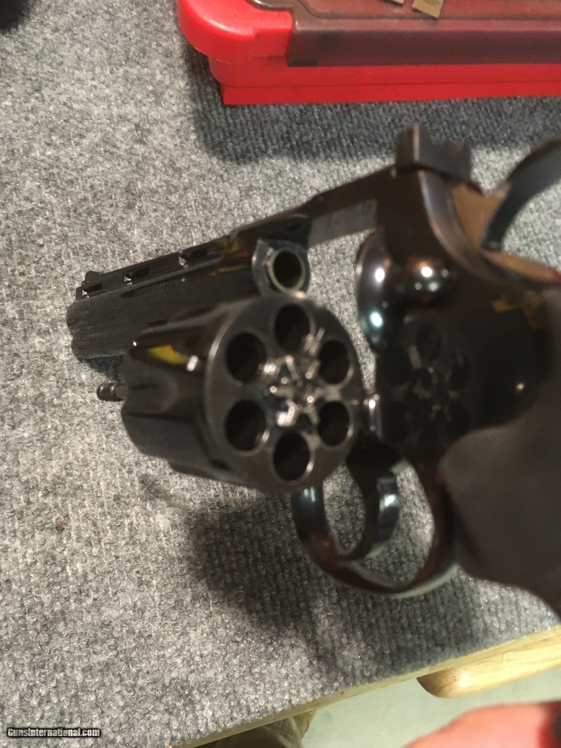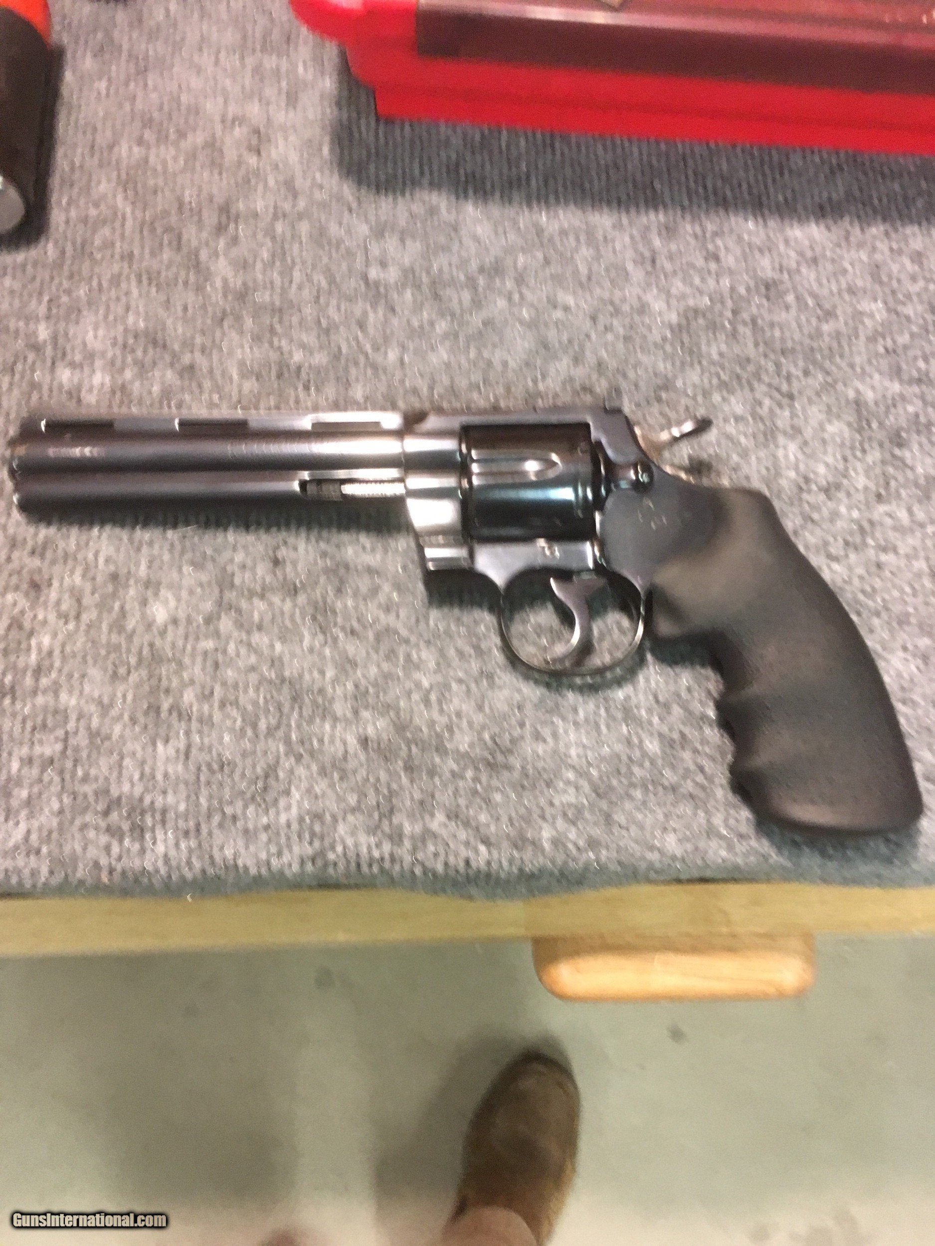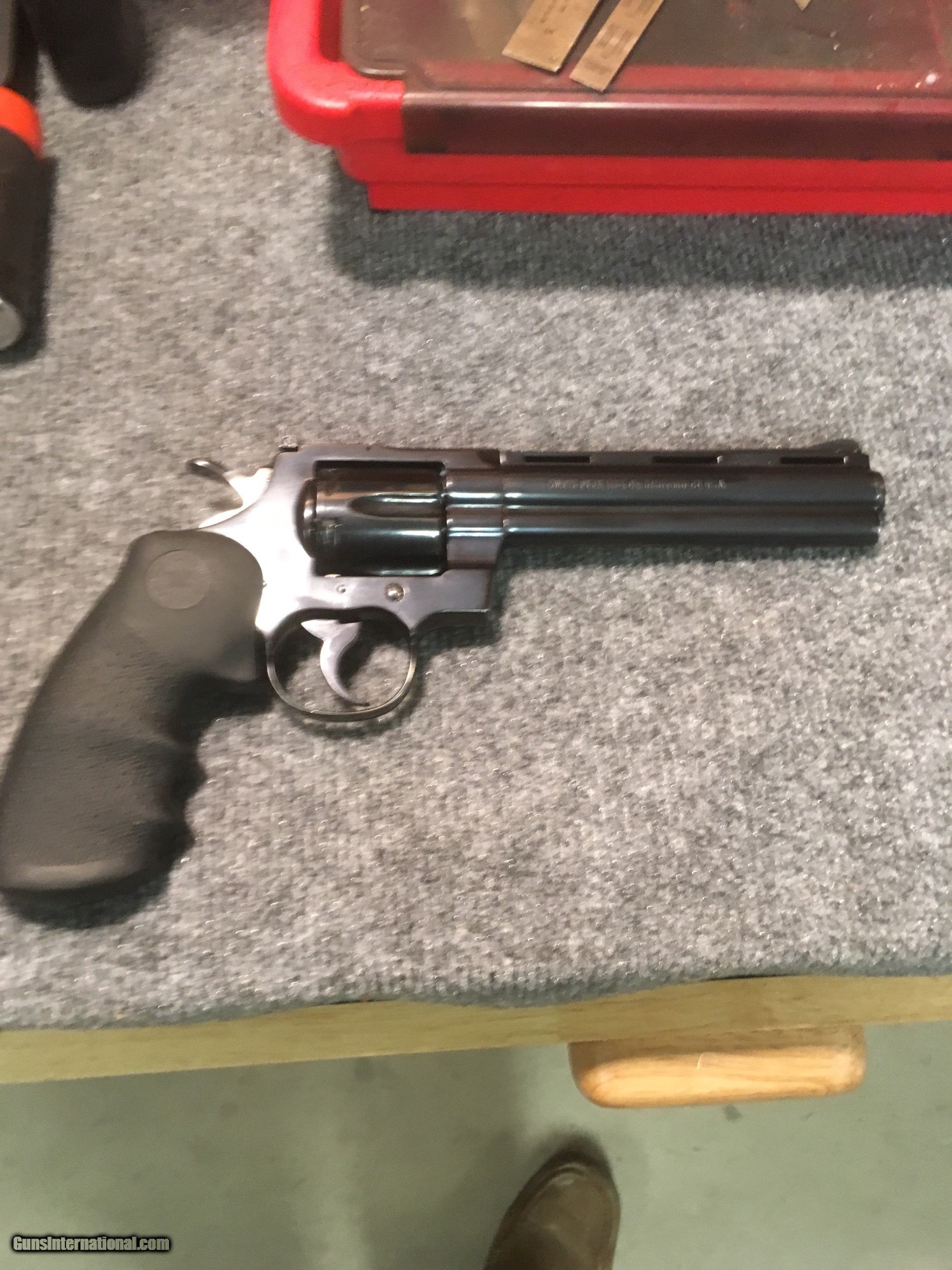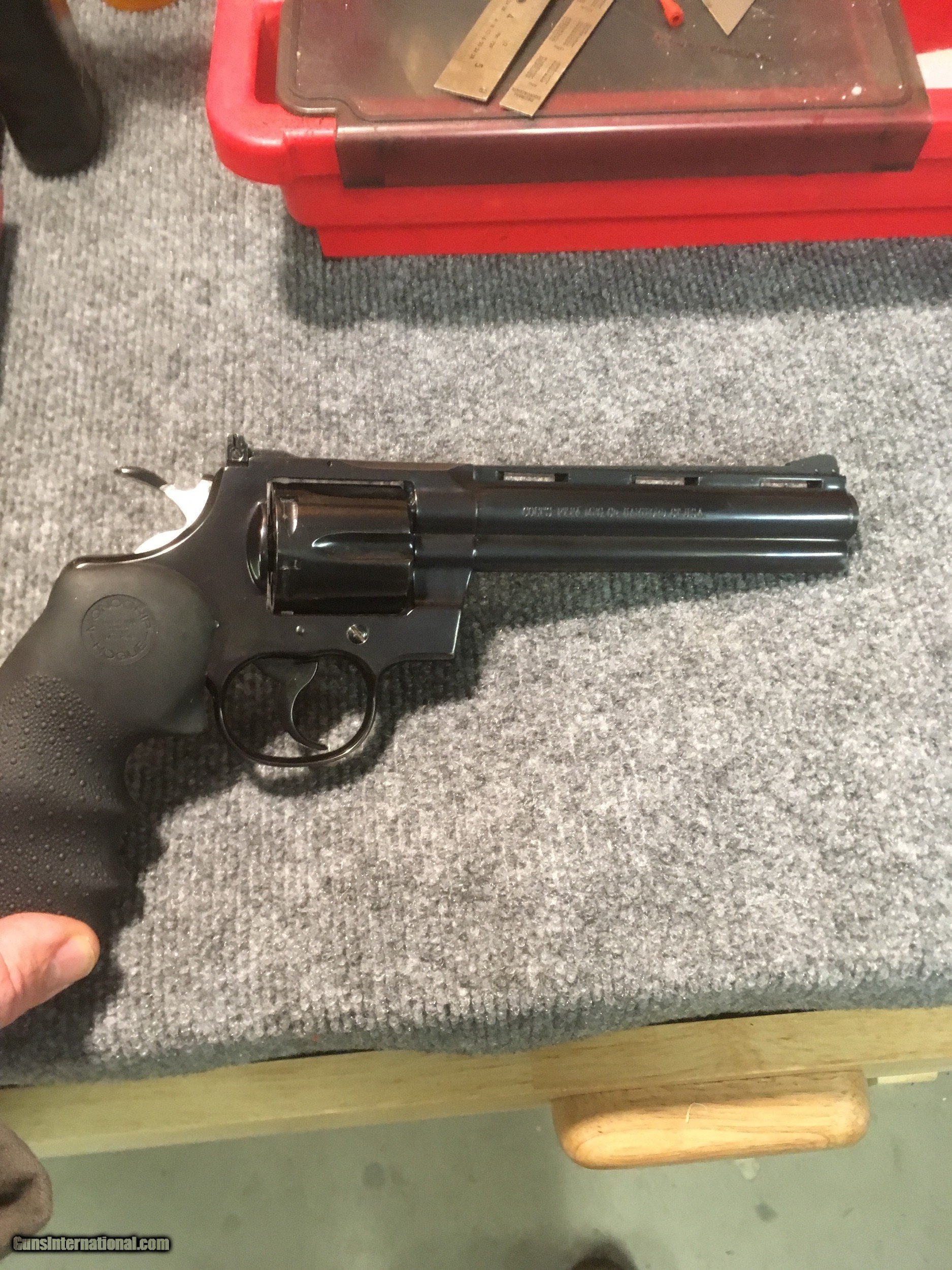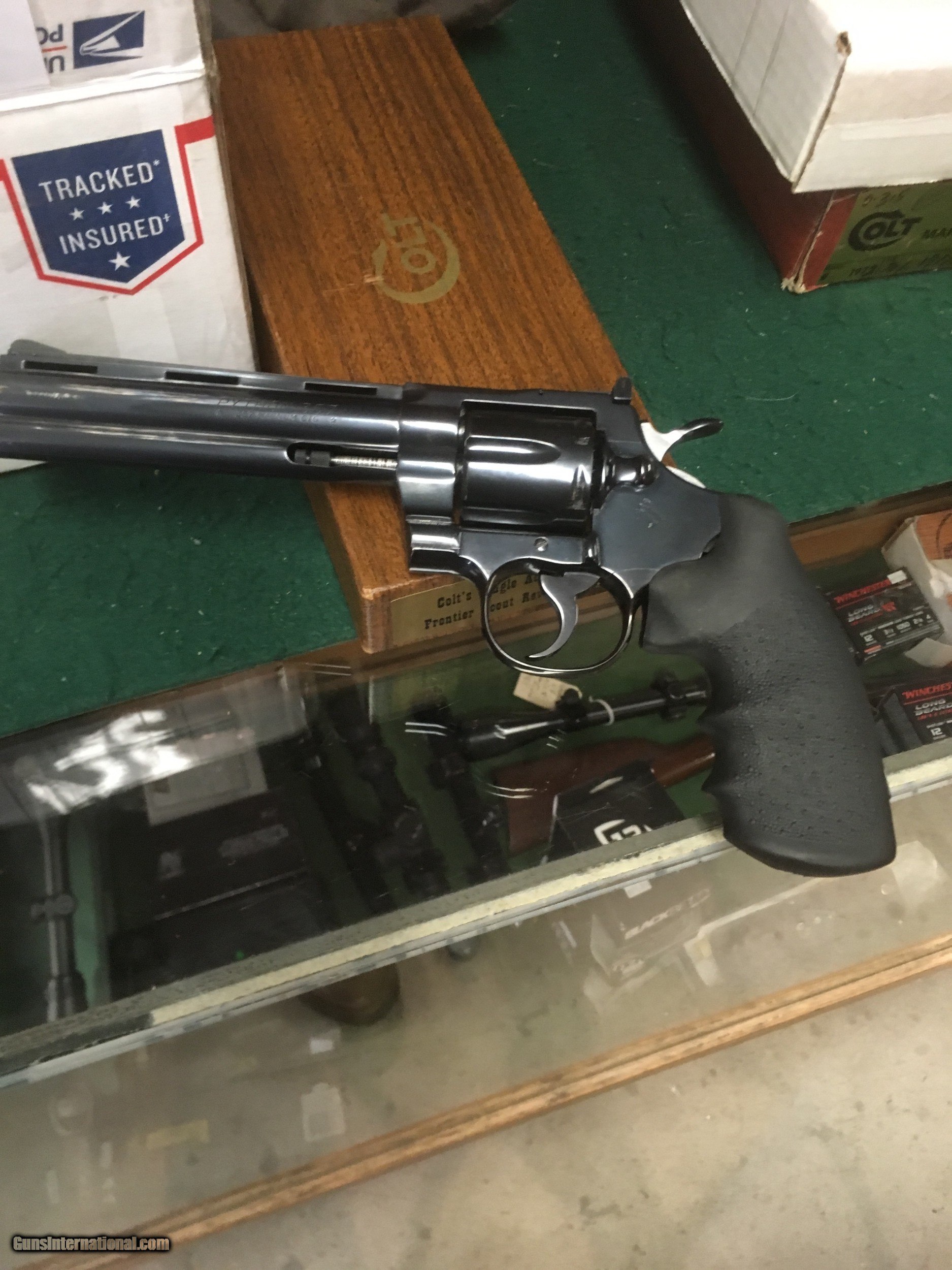 Description: Here's a very nice Colt Python 6" Blue that will make a great shooter for you. It has some holster wear on the muzzle. No rust or pitting. It functions perfectly. There's an inexpensive pair of After Market Grips that really don't fit the weapon that nicely. Please ask questions prior to purchasing. It will ship from My FFL Dealer to yours. Cashiers Check will be the method of payment. SOLD |