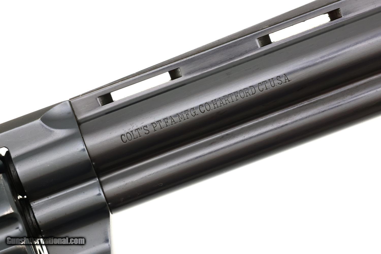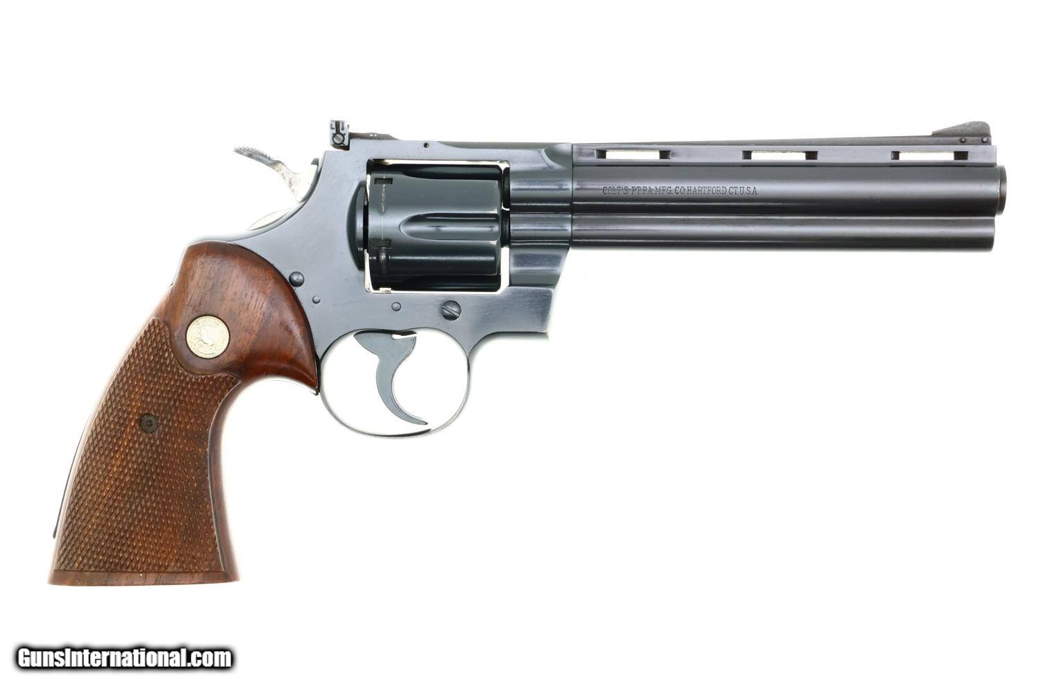 Near excellent original condition Colt Python revolver with 6 inch barrel, Royal Blue finish, made in 1961, with a mirror-bright bore. Perfect for collecting and with just enough wear to take to the range without recrimination!