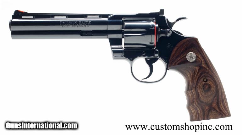 Colt Python Elite. .357 Mag. Colt Blue 6". As New Condition. In Blue Hard Case. Features Ventilated Rib, Fast-Cocking Wide Spur Hammer & Full Shrouded Ejector Rod. 00281