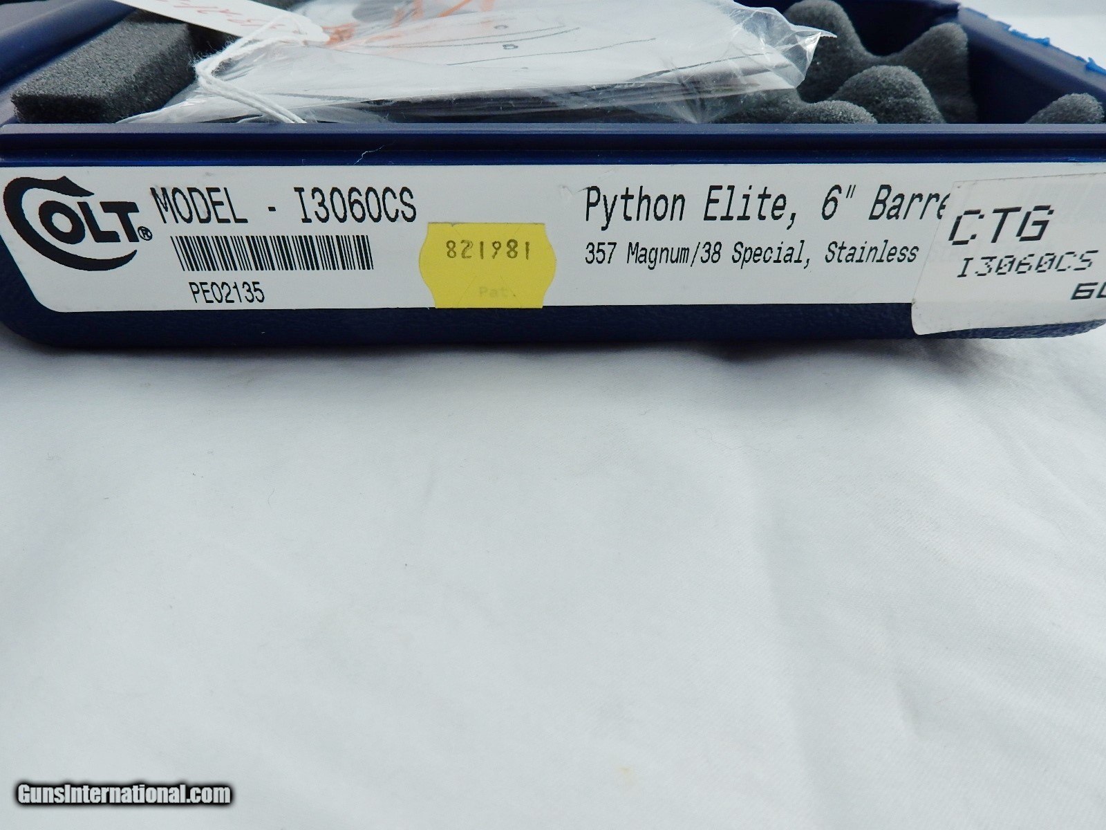 Description: This is a Colt python 357 with a 6 inch barrel. This gun is 100% new in the box. Serial # is PE02xxx. Buyer pays 75.00 shipping. Thank you. 43-21-2 SOLD |