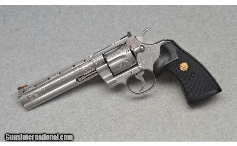 Description: SOLD Caliber Info: .357 magnum Metal Condition: excellent light turn mark Wood Condition: excellent Bore Condition: shiny Barrels: 6 Stock: Colt Pachmayr grips Weight: 2lbs 14oz Sights: notch and blade Item Location: Fort Worth, TX |