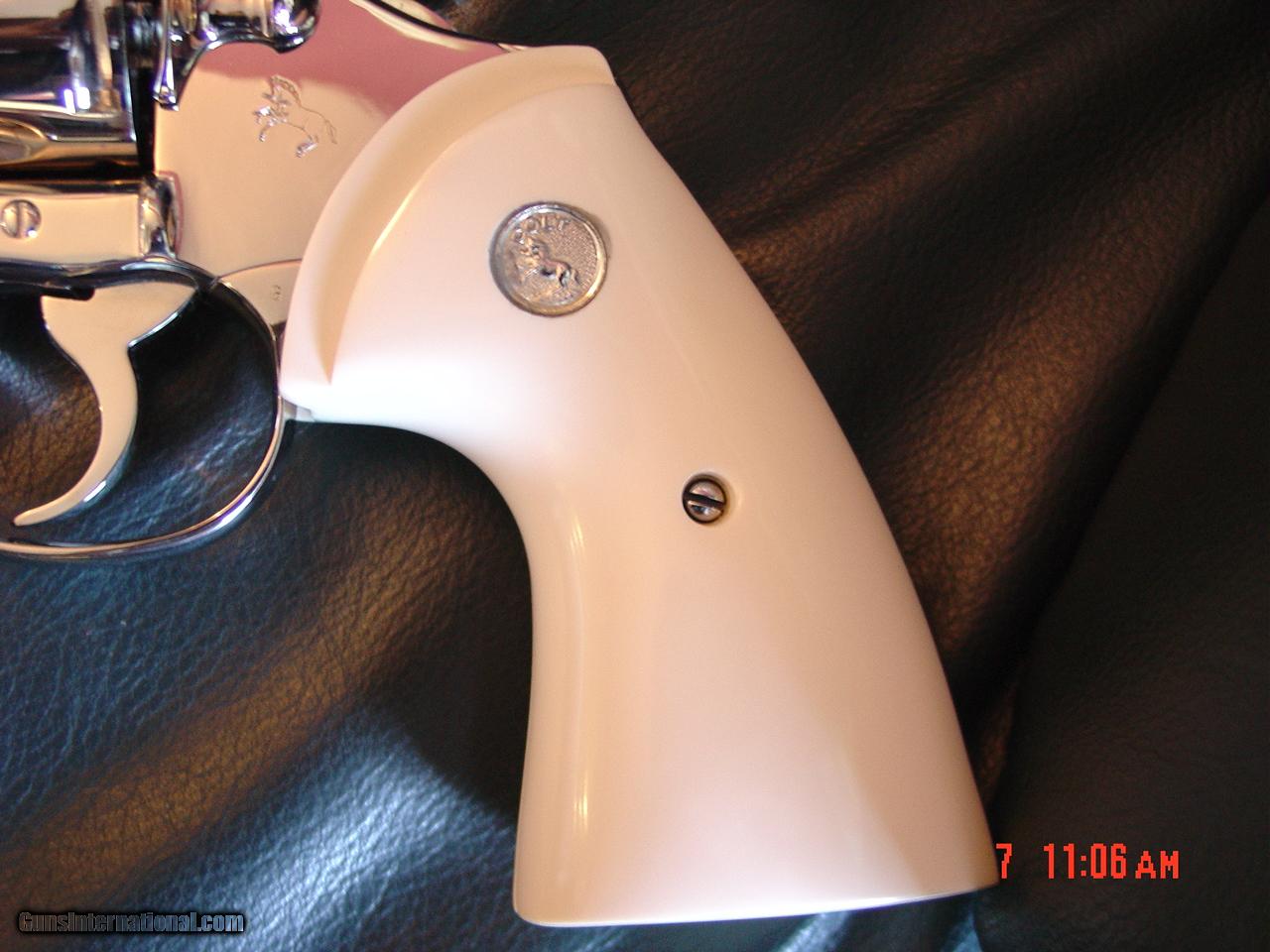 Colt Python fully refinished in bright nickel,Bonded Ivory grips,6",357 mag,1978,as new showpiece !!