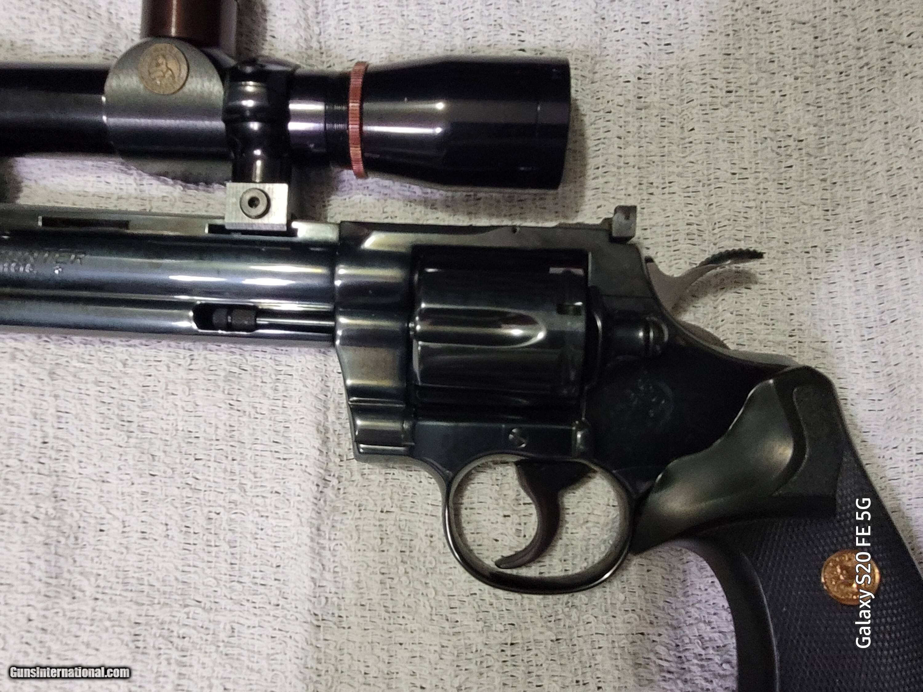 Description: This .357 magnum Colt Python Hunter was one of the only 1,500 made in 1980, which was the first year of production. It features an 8" barrel and a Colt Leupold scope M8-2X. It looks barely fired. This will be a great addition to your collection. Comes in a Haliburton Zero aluminum locking case. Do not have the original box or papers. * LEGAL: Firearm or item (if applicable) must be legal to own in your state; know your state laws. If you are buying a firearm which requires it to be shipped to an FFL dealer, it is your responsibility to provide the receiving FFL’s license as soon as you make your purchase. I will only ship to an FFL if the item requires an FFL. I will ship to a C&R licensed person if the item qualifies in most cases. * SAFETY NOTICE: Buyer is solely responsible for determining that a used firearm or item is safe to shoot or use. By , the buyer agrees to hold seller harmless against damages, injury or death caused by defective merchandise. Firearms should be inspected by a competent licensed gunsmith prior to firing. Handgun Caliber: .44 Remington Magnum Manufacturer: colt Model: HUNTER Price: $5,000.00 Shipping: $39.00 Buy Now Contact Seller |