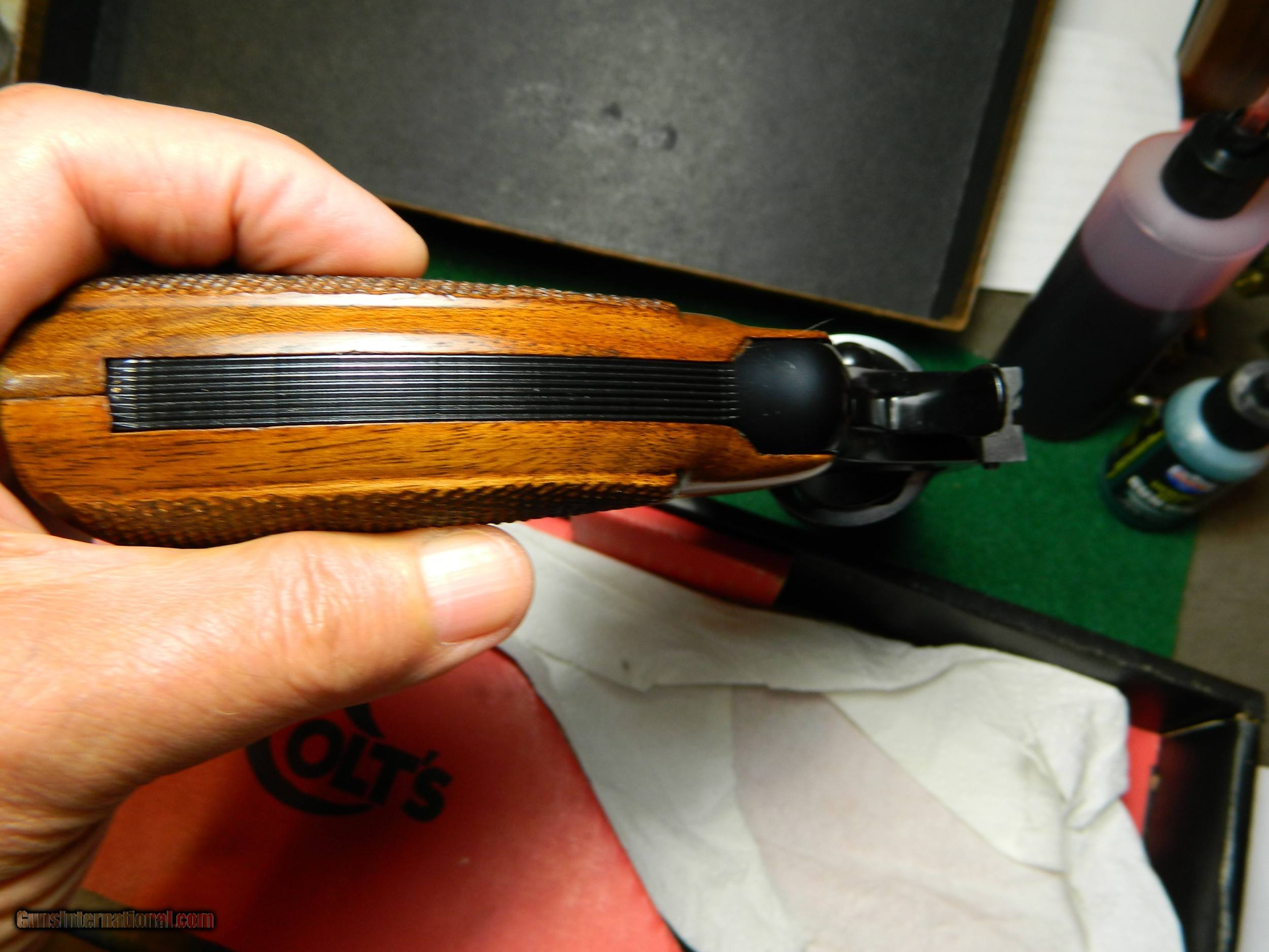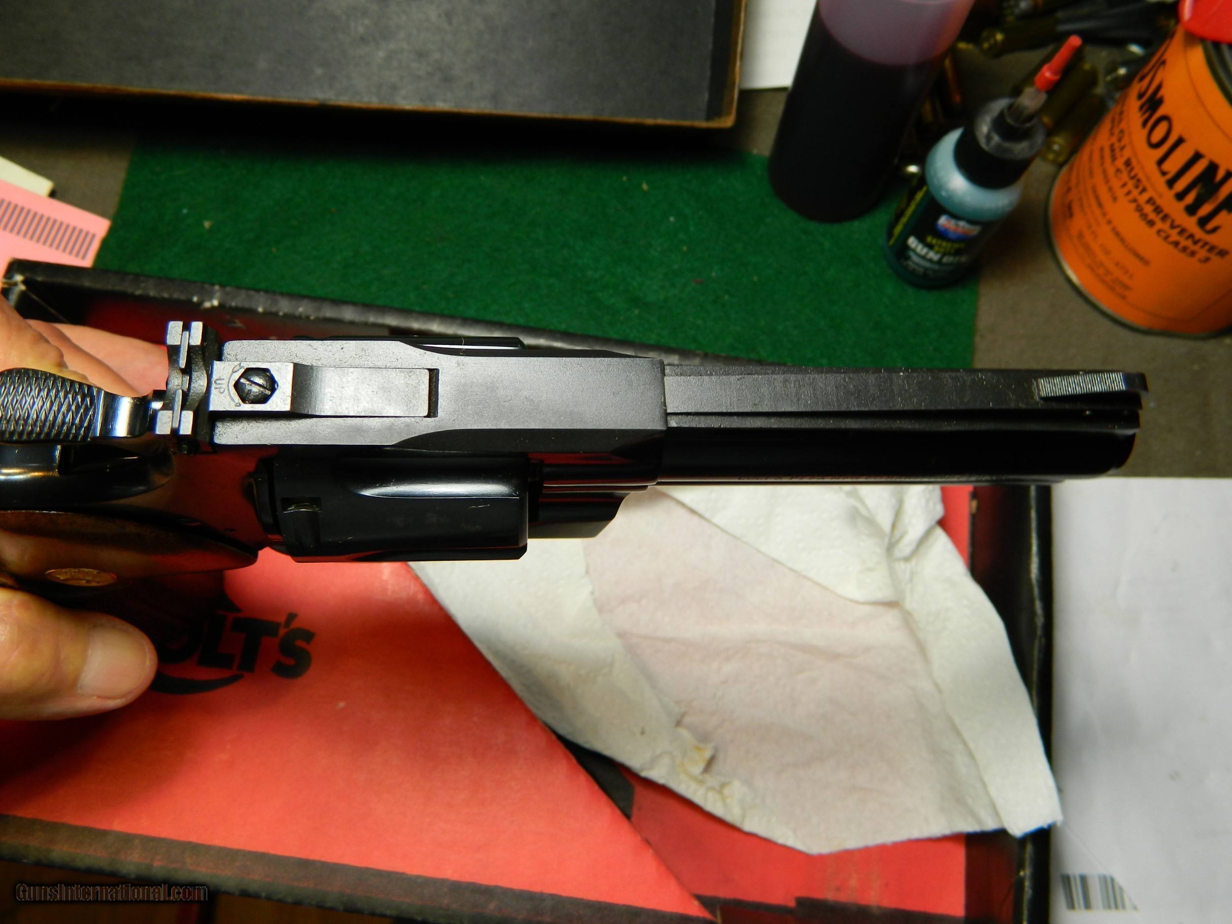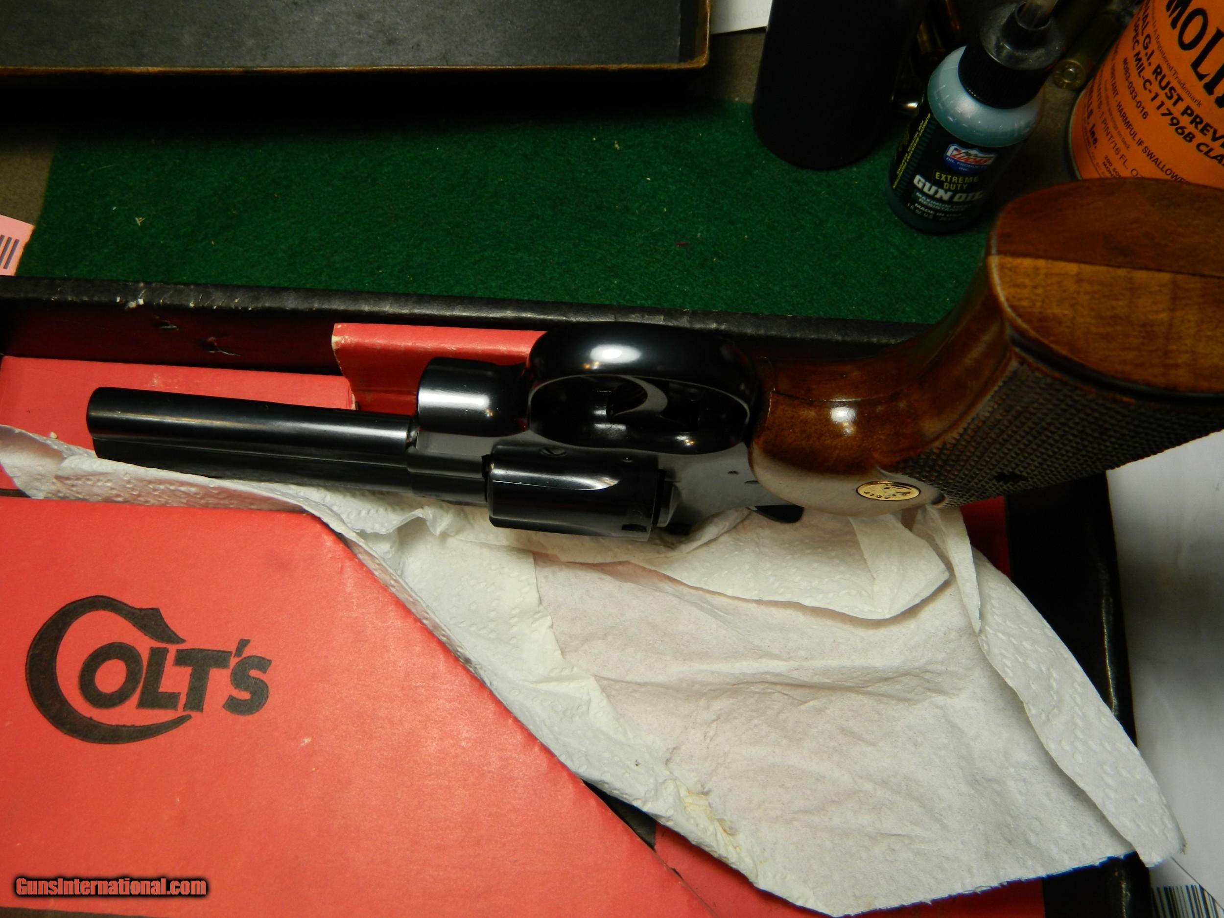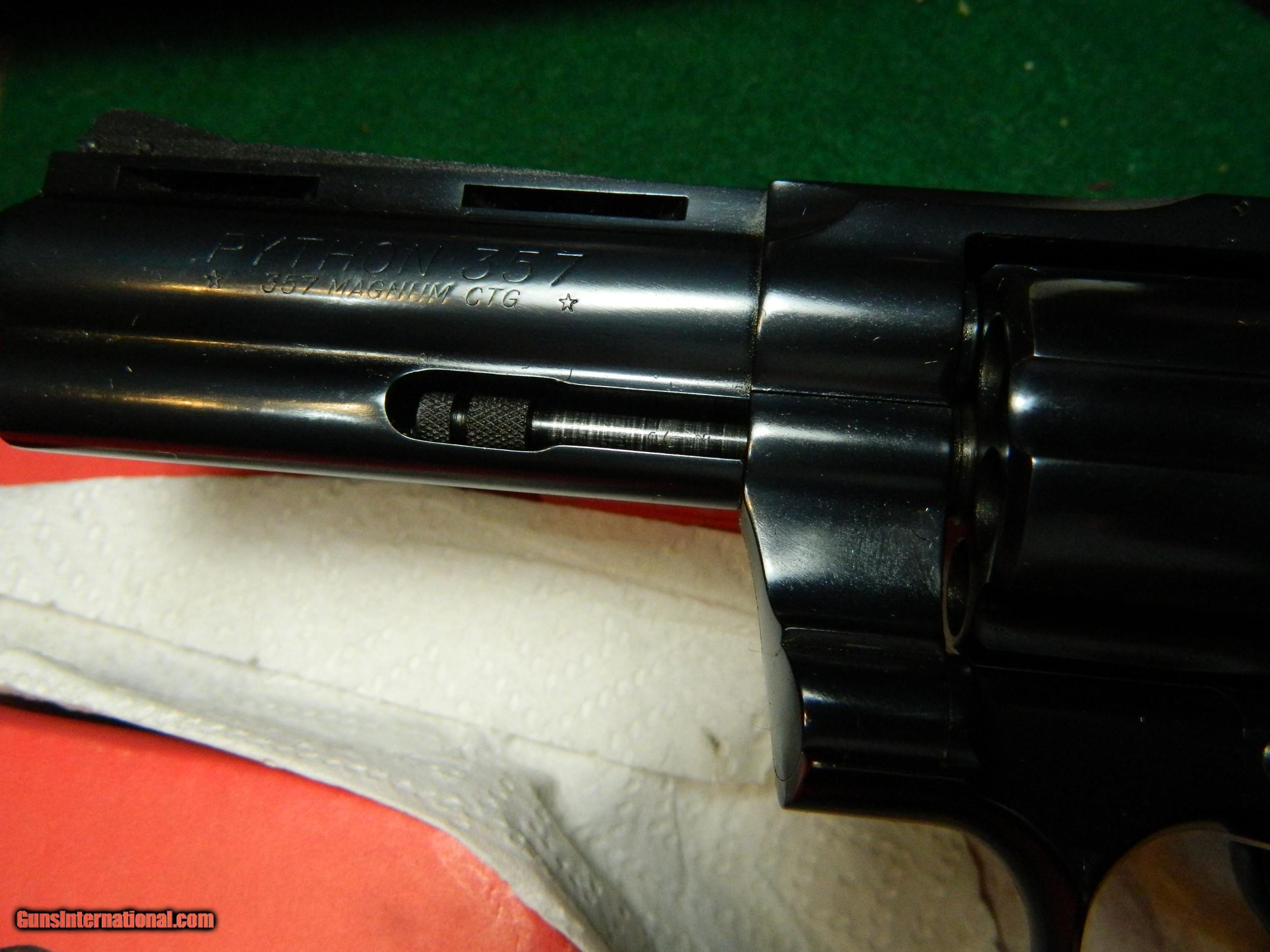 Description: we have in on consignment a absolue super Colt python that was made in 1969. this beautiful colt is in it's original box, with warranty card and the test target. this is an investment piece. Please look at pictures to see condition. if you need more pictures please ask. hard to improve upon !!!! If you are wondering about the target, there was a small piece of tape, and when removed it tore the serial number off. the timing and lockuo are like the day it left the factory. gun appears to have been test fired only !!!!! SOLD |