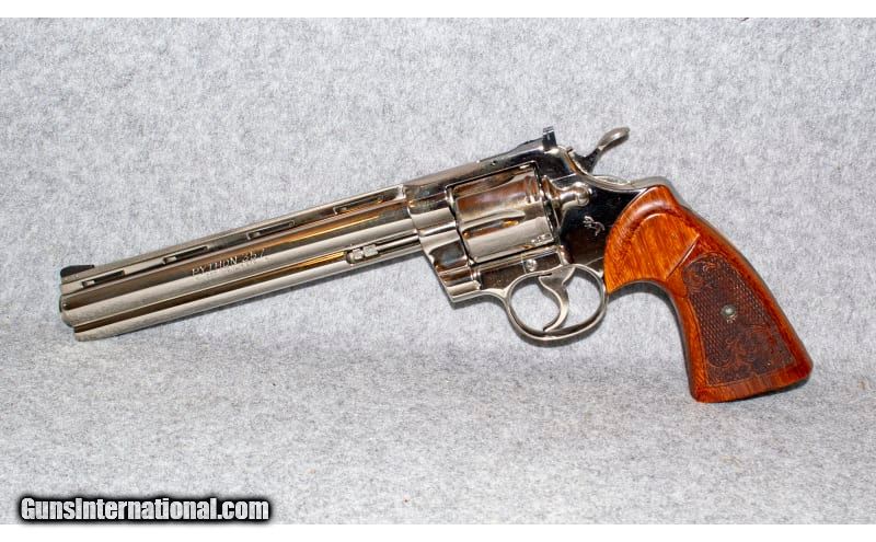 Description: Spotless Colt Python in Nickel with 8" barrel in .357 Magnum. There is no wear or scratches on this revolver. Grips are not original. .357 Magnum SOLD Barrels: 8 Weight: 2.5 lbs Item Location: Lone Tree, CO |