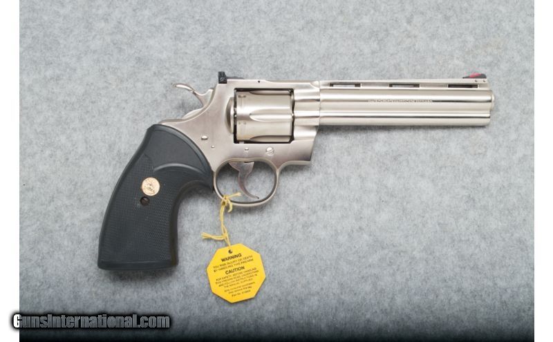 Description: Used. As new; possibly un-fired. SOLD Manufacturer: Circa: 1981 Caliber Info: .357 Mag. Metal Condition: Excellent (Nickel Plated) Bore Condition: Clean and sharp Barrels: 6 Triggers: Narrow grooved Stock: Black checkered rubber grips with Colt Medallions Weight: 48 oz. Sights: Adjustable WO rear; red blade front Item Location: Rapid City, SD |