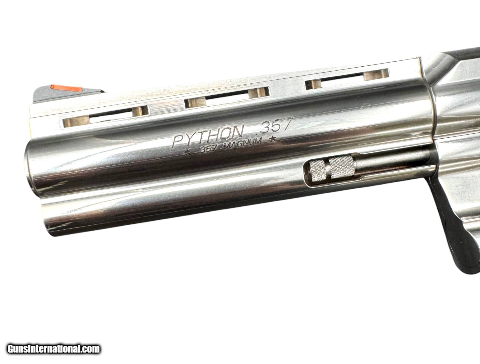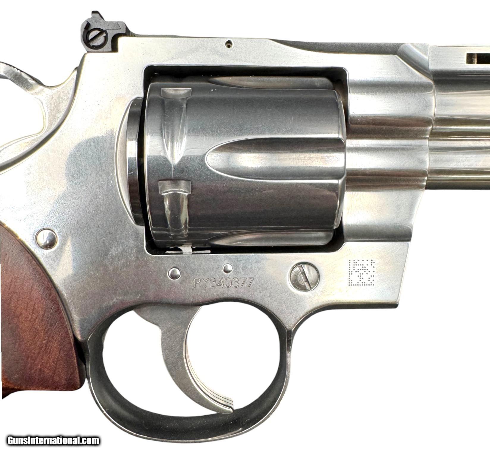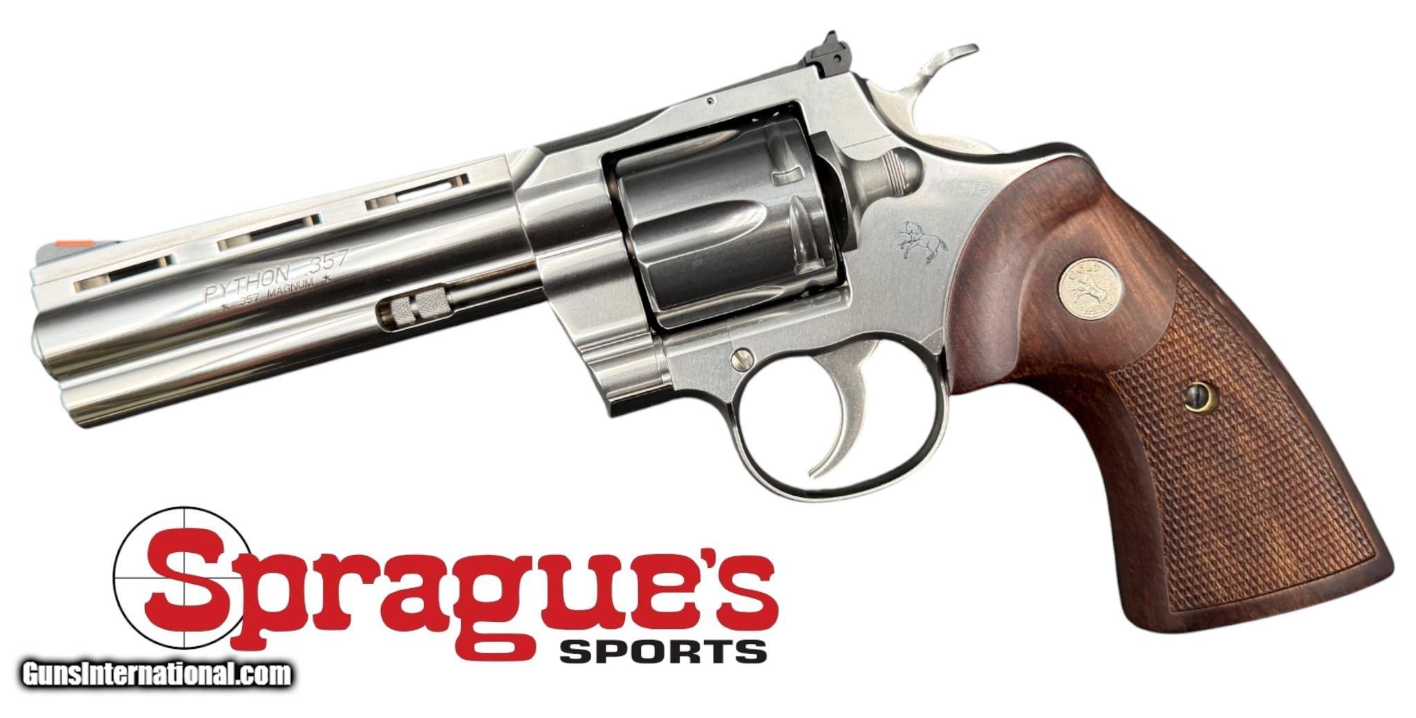 Description: Here's your chance to own a serious piece of American revolver royalty. This is a stainless Colt Python chambered in .357 Magnum, outfitted with a 5” barrel and classic Colt medallion wood grips. Smooth trigger, tight lockup, and the kind of finish that makes you stop and stare. Whether you're a shooter or a collector, this one earns its keep just sitting on a velvet-lined shelf—or performing like a dream at the range. The action on this thing is exactly what Colt lovers dream about—clean break in single-action and a solid, consistent pull in double. Cylinder timing is sharp, and the lock-up is tight. The vent rib barrel and full underlug bring all that iconic Python presence. Please review the photos carefully – the finish is gleaming, and the mechanical condition looks and feels excellent. FEATURES & HIGHLIGHTS Chambered in .357 Magnum Stainless steel finish with 5” vent rib barrel Colt factory wood grips with medallions Fully adjustable rear sight, orange ramp front Six-shot cylinder with clean, sharp chambers Box as well as paperwork included Buyer Pays Actual Shipping 3% Credit Card Fee Handgun Caliber: .357 Magnum Serial Number: PY340377 -JF Price: $1,099.00 Contact Seller |