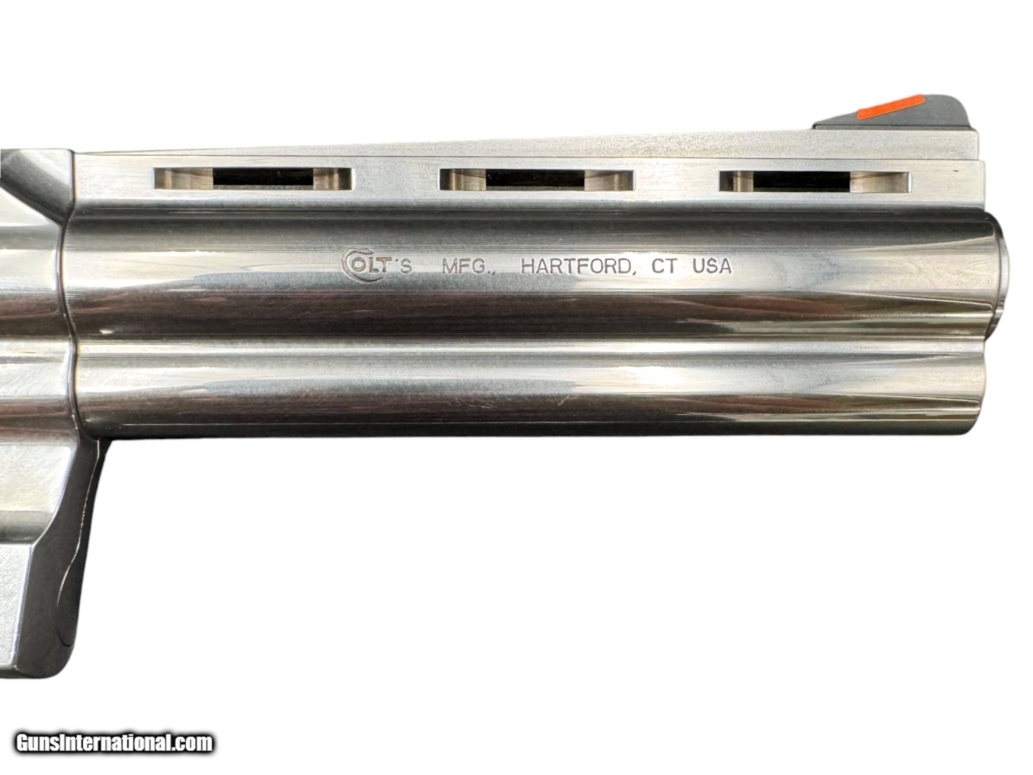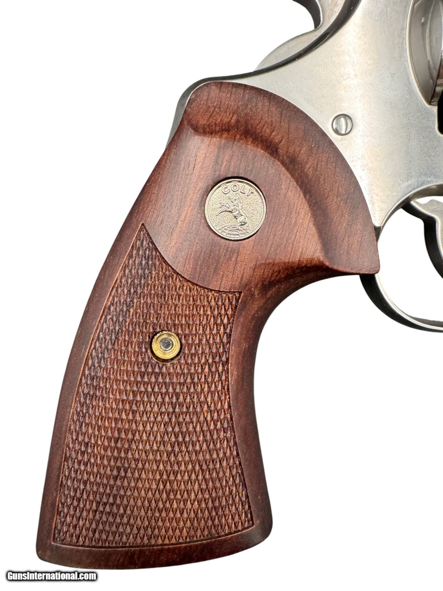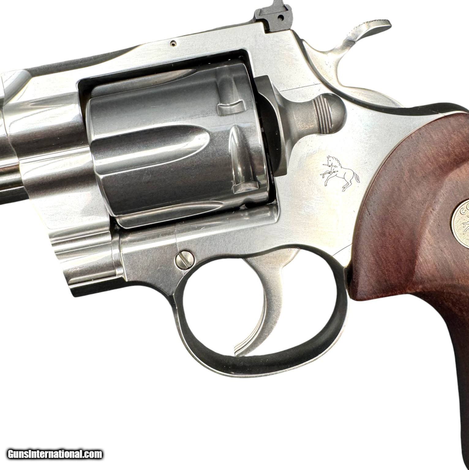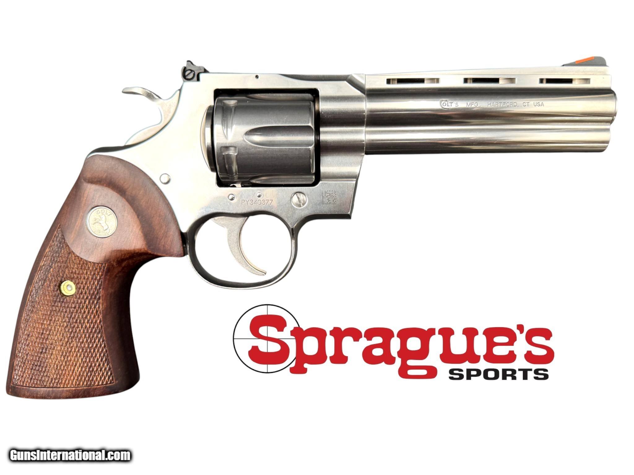 Description: Here's your chance to own a serious piece of American revolver royalty. This is a stainless Colt Python chambered in .357 Magnum, outfitted with a 5” barrel and classic Colt medallion wood grips. Smooth trigger, tight lockup, and the kind of finish that makes you stop and stare. Whether you're a shooter or a collector, this one earns its keep just sitting on a velvet-lined shelf—or performing like a dream at the range. The action on this thing is exactly what Colt lovers dream about—clean break in single-action and a solid, consistent pull in double. Cylinder timing is sharp, and the lock-up is tight. The vent rib barrel and full underlug bring all that iconic Python presence. Please review the photos carefully – the finish is gleaming, and the mechanical condition looks and feels excellent. FEATURES & HIGHLIGHTS Chambered in .357 Magnum Stainless steel finish with 5” vent rib barrel Colt factory wood grips with medallions Fully adjustable rear sight, orange ramp front Six-shot cylinder with clean, sharp chambers Box as well as paperwork included Buyer Pays Actual Shipping 3% Credit Card Fee Handgun Caliber: .357 Magnum Serial Number: PY340377 -JF Price: $1,099.00 Contact Seller |