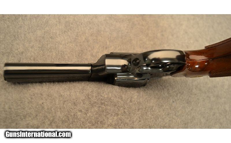 Description: SOLD Manufacturer: SN : E77219 ; mfg in 1974 Caliber Info: .357 Magnum Chambers: 6-shot revolving cylinder Metal Condition: Very Good overall, shows some fine scratches and bluing wear on cylinder and muzzle; lock-up is tight Wood Condition: Very Good, some handling wear and scratches Bore Condition: Clean Barrels: 4 inch Triggers: Double Action/ Single Action Stock: Colt checkered wood grips Weight: 39 oz Sights: Factory, adjustable rear with front ramp sights Extras: No Box Item Location: Greenville, SC |