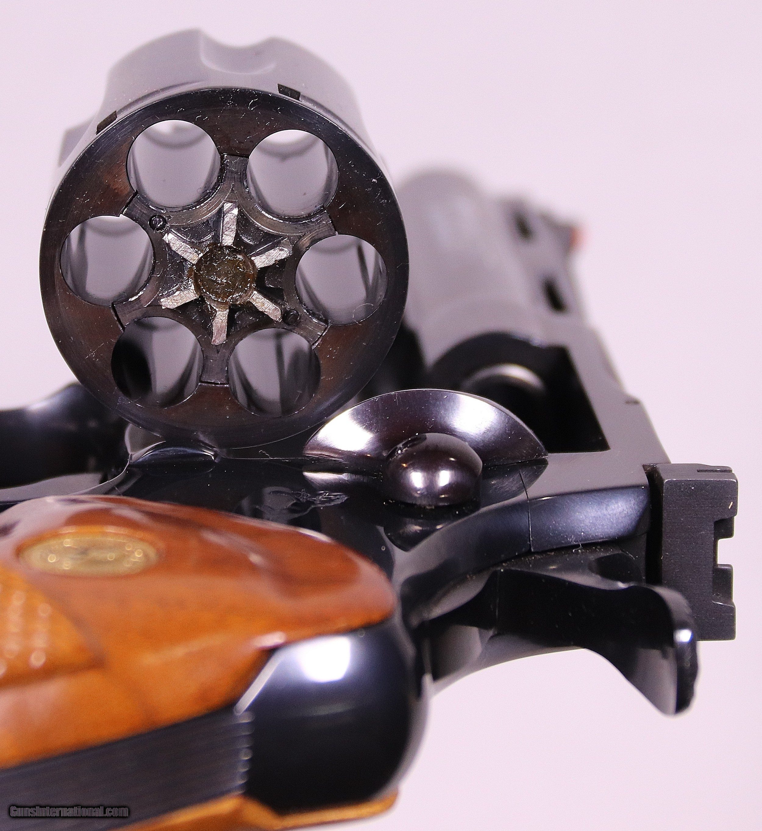 Description: SOLD...............................Remarkably, this Python has survived since 1978 (42 Years) without being fired. The condition is “As New” with no storage problems. The bore is as new and crane is tight. I have not tried the action because that would just be stupid. There is a very faint turn ring from factory test firing and someone playing with it early on. This is a great addition to a Snake Gun collection. .357 Cal with a 4 inch barrel. Serial Number V01500. FFL Required. Beaver Creek Arms TERMS & CONDITIONS Objective: As a collector of 35 years and Licensed Firearms Dealer since 1989 I have a clear definition of a satisfactory transaction. I will be paid as we agreed to, and you will be satisfied with your purchase. My goal is to establish a client list of satisfied repeat customers who will recommend me to other collectors. It’s just that simple. Exiled Saudi princes with secret funds needing change from an over paid purchase need not apply. Notice: ALL Federal, State, & Local firearms laws will be followed. I will take NO shortcuts in the process of a legal sale or transfer, so please don’t ask. SHIPPING: Normally shipments are made via U.S.P.S. Priority Mail, Insured, with Signature required. Typical Packing, Shipping and Insurance cost for a handgun is $30.00. Checks to be made out to: Steve Clark Mailed to: 380 Beaver Creek Rd. Dillsburg PA 17019 FIREARMS: Modern firearms, post 1898, can only be shipped to a Type 01 Federal Firearms License address. Curio-Relic firearms, as defined by the BATF list, can usually be shipped to a Type 03 Collectors License address. Some states have additional restrictions such as CA, CT, DC, IL, NJ and NY. A signed valid FFL license copy either mailed or emailed will be required for shipment to only the license address. Antique firearms, pre 1898 do not require a Federal License. For purchase, a copy of a Government Issued Identification (Drivers License, Etc), showing date of birth and current address will be required. GUARANTEE: Your complete satisfaction is assured, see objective above. If you are not satisfied, please contact me within 3 days of receipt. Please don’t fire the weapon, safety, function and accuracy are NOT Guaranteed. Any weapon offered by Beaver Creek Arms is never test fired nor is there any representation the gun is functional and safe to fire. These guns are sold for collectors and only represented as used firearms that must be checked by a competent person, observe all the necessary safety precautions prior to attempting to load and fire one of these weapons RETURNS: Returns must be made within 3 days of receipt. They must be received in exactly the same condition with no parts exchanged. If it has been altered, damaged, or fired, a refund will not be made. Packing, shipping and insurance cost will not be refunded. All layaway purchases are returnable for merchandise credit only. PAYMENT: Bank check, Personal check, and Money Orders are preferred. Visa and MasterCard are accepted with a 3% processing fee. For Visa and MasterCard orders please provide the account number, code number, expiration date, name on card, phone number and card billing address. This information can be phoned in, or E-Mailed. All orders must be paid in advance, C.O.D. orders are not accepted. Checks, both Bank and Personal must clear before the order will be shipped, usually a 2 week delay. LAYAWAYS: A 20% deposit is required. Balance is due in 30 days. Deposits are non-refundable and are forfeited after 30 days. Layaway sales are returnable for merchandise credit only. SALES TAX: Pennsylvania state sales tax is 6% for in state purchases. The payment of other states sales tax, if applicable, for shipped items is the buyers responsibility. DISCREET: Client information will remain Confidential. Your privacy is protected. SOLD |