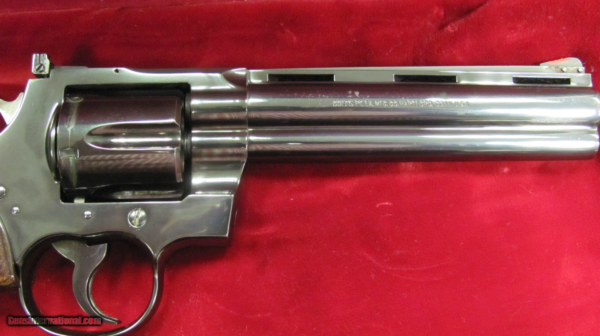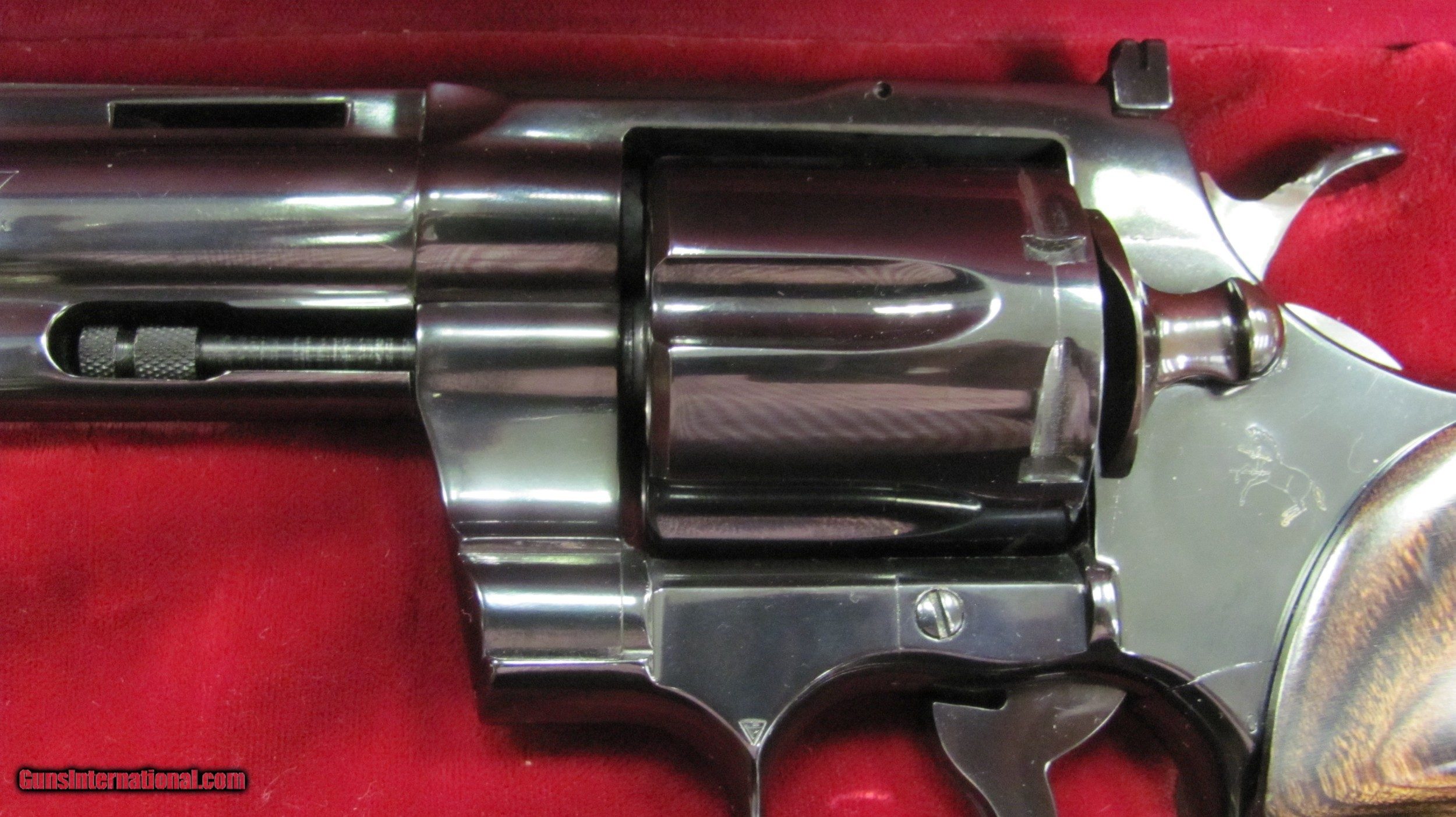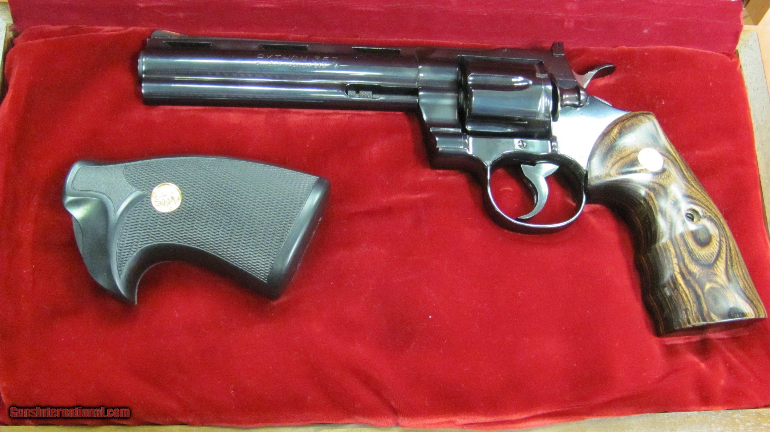 Colt Python with 6 Inch Barrel Manufactured in 1974 with Extra Grips All in Factory Colt Walnut Box with Colt Custom Logo Insert