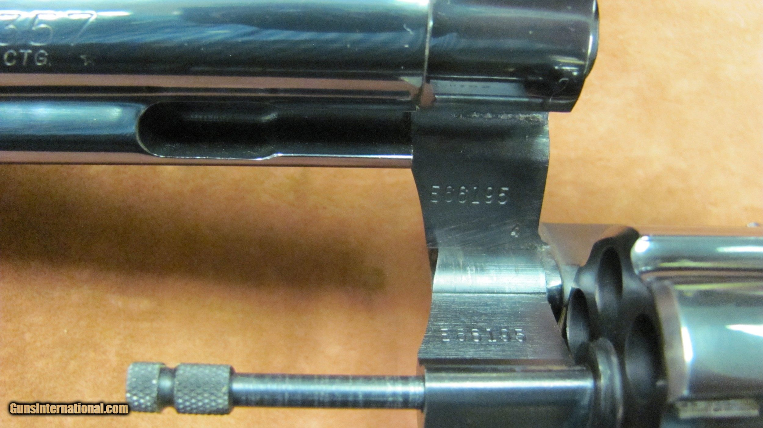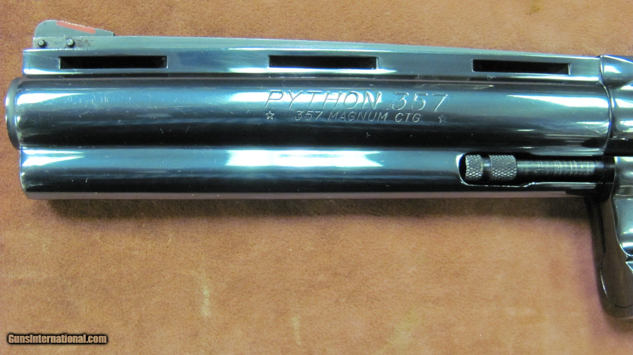 Description: Colt Python with bright blue original finish. It is in a Walnut Presentation Box with the Colt Custom Logo Insert on the outside of the top of the box. SOLD Handgun Caliber: .357 Magnum Manufacturer: Colt Model: Python Revolver Serial Number: E66195 Barrel Length: 6 Inches Condition: Excellent Metal Condition: Excellent Wood Condition: Excellent Bore Condition: Excellent Action: Double Action Finish: Blue, Original Manufacture Date: 1974 Proof:Nitro: Nitro |