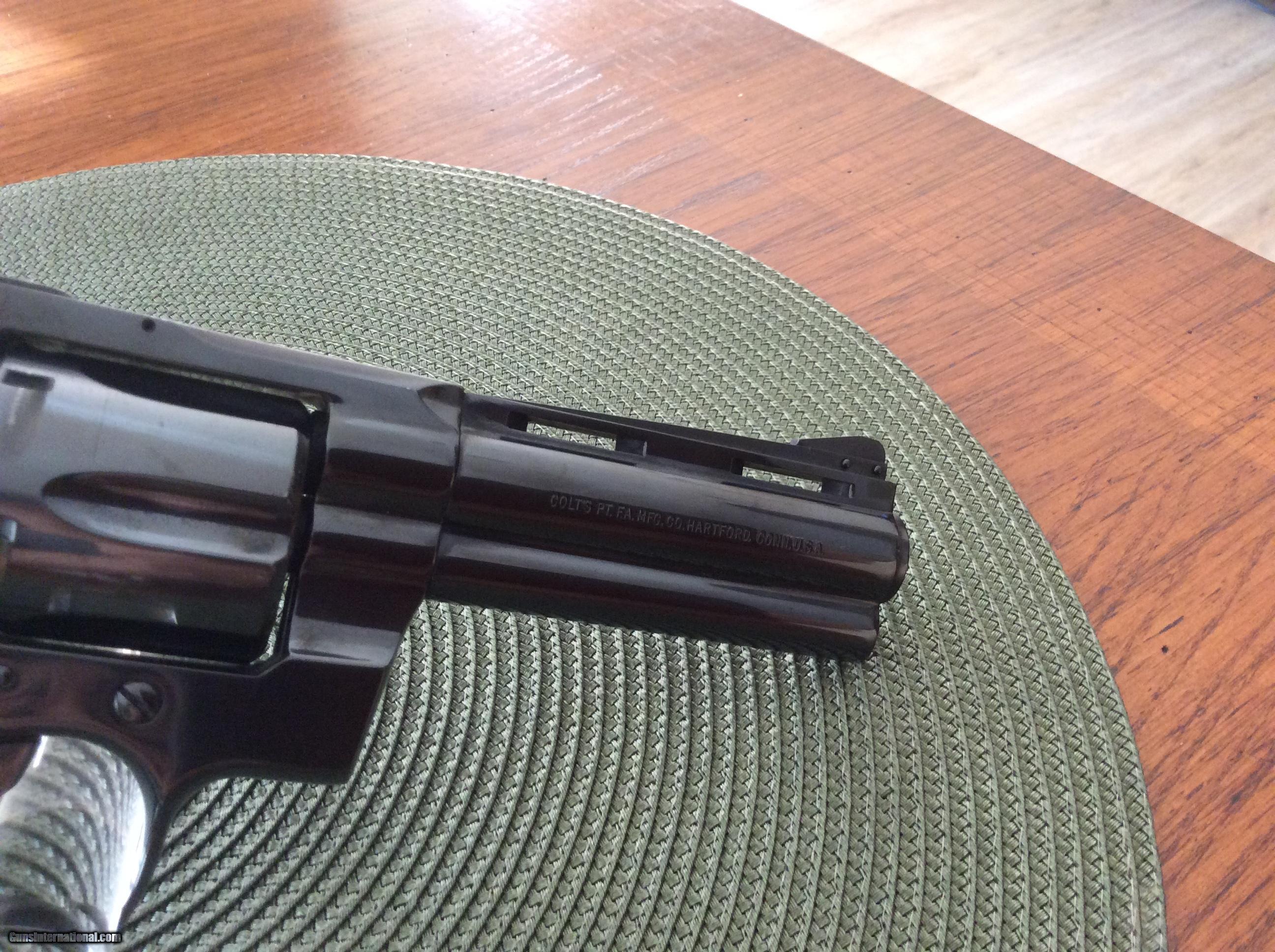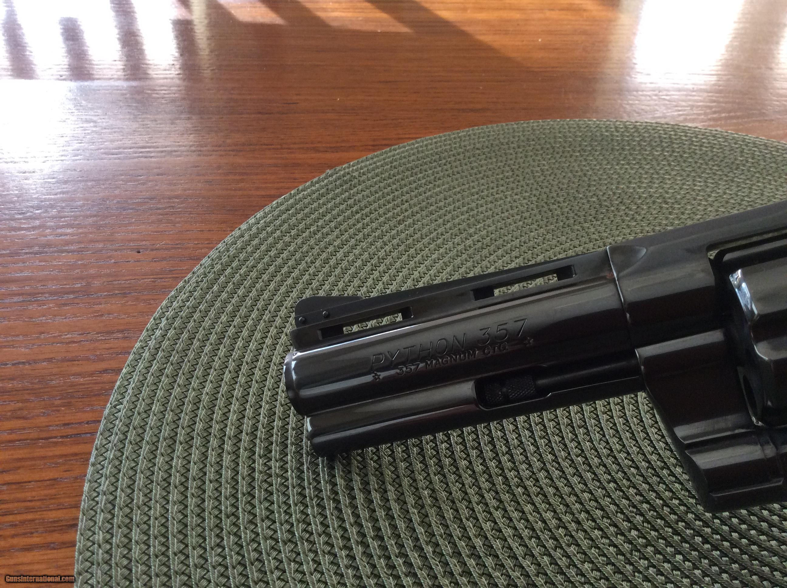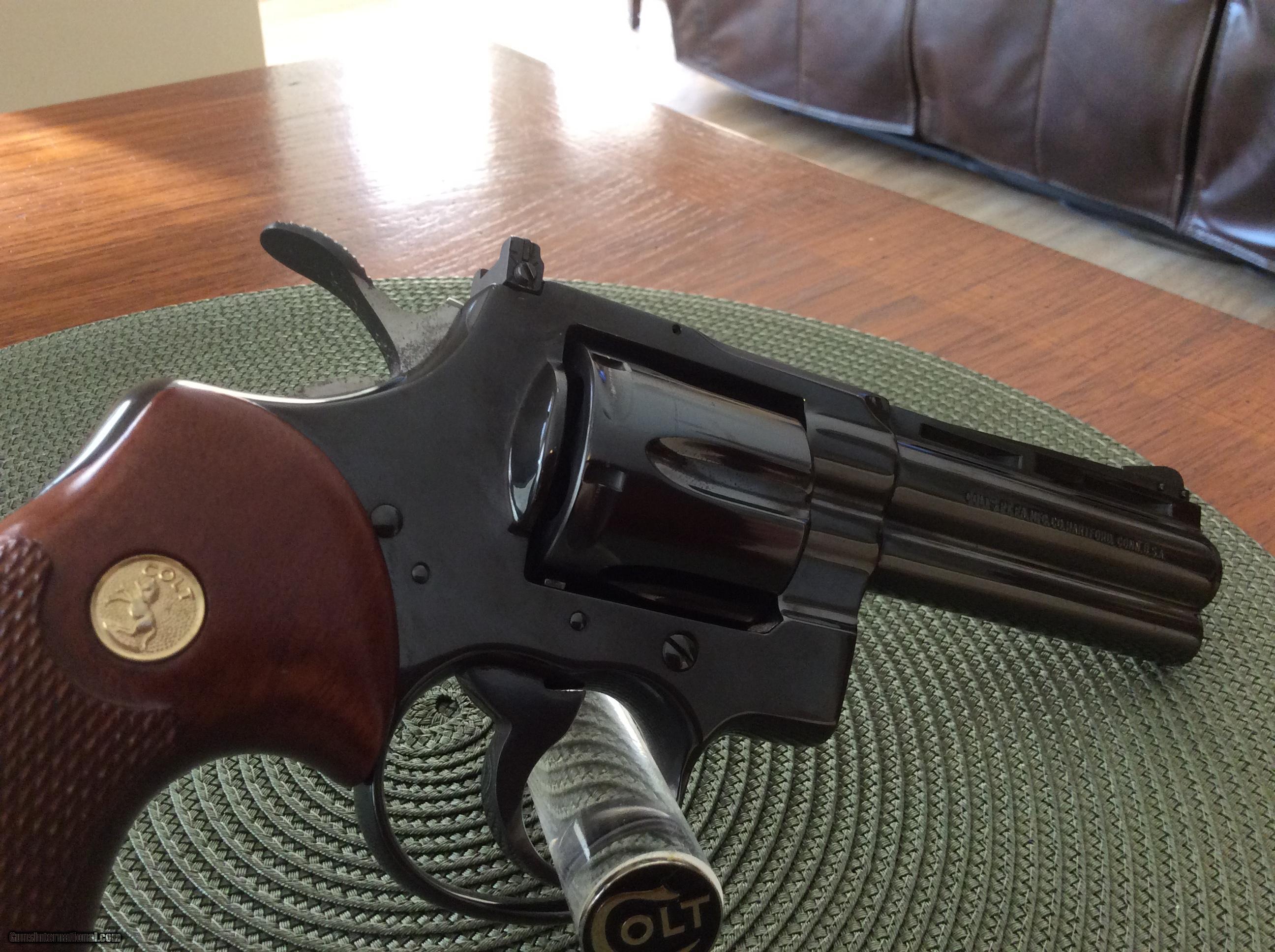 Description: Colt Python 4” Blue Deep rich Royal Blue finish and only a slight turn line this on is in very nice shape. No box unfortunately. The original wood grips are excellent and overall a very nice piece you won’t be afraid to shoot or show. Shipping included in price FFL to FFL Transfer. Any kind of funds will work. Please take a look at my other fine Colts SOLD Manufacturer: Colt Model: Python Caliber Info: .357 Mag Condition: VG Metal Condition: VG Wood Condition: VG-EX Bore Condition: VG-EX |