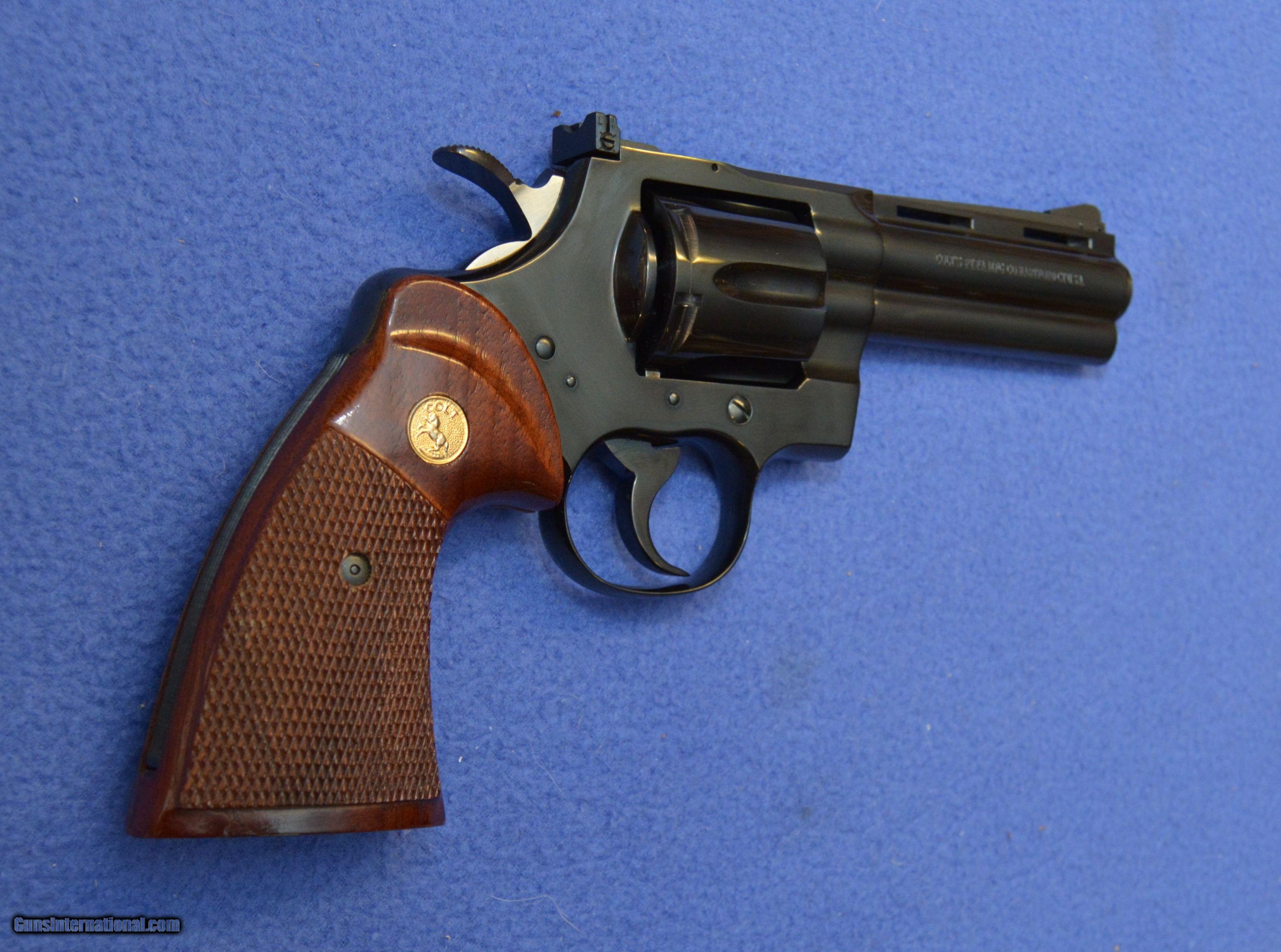 Description: Colt Python From my personal collection find this virtually perfect Colt Python 4-inch revolver. The blue on this specimen is 99.8% with only the faintest of cylinder line showing in the right light. I bought the revolver some years ago from a fellow club member who had fired 24 rounds through it and put it away. Revolver bears serial # E2231. Sorry he was not a box keeper. Grips are excellent but there are some extremely minor scuffs or scratches on them. I might consider a partial trade for a Winchester 63 with grooved receiver or plain. Even though this is a private personal firearm I must insist the buyer if local complete BATF form 4473 and pass the TBI background check. If you can't or won't, don't bother contacting me. Yes, we can and do ship firearms into California if legal there. Shipping will be $20.00 USPS Priority Mail. If illegal to own in your area don’t buy. Payment with US Funds from US Banks ONLY!!! We accept Cash, Checks, Money Order and US Postal Money Orders. Lay Away available. We also accept Visa, MasterCard, AMEX and Discover at 3% service fee. All items ship when final payment clears, no exceptions. Sorry we cannot accept PayPal for firearms or ammunition, their policy not ours. Please make sure to check our other offerings as we are consigning some very interesting and desirable firearms this month. We do have a law away plan for all our items. We cannot accept PayPal for firearms or ammunition, their rules not ours. Call 865-805-1187 for details or questions. SOLD Curio/Relic: Yes Manufacturer: Colt Model: Python Serial Number: E2231 Caliber Info: 357 Magnum Bore: Excellent Chambers: Excellent Condition: 99.8% Metal Condition: 99.8% Wood Condition: 99% Bore Condition: Excellent plus Barrels: 4 inch Barrel Type: Steel vent rib Action: Double Action Stock: Walnut Sights: Adjustable |