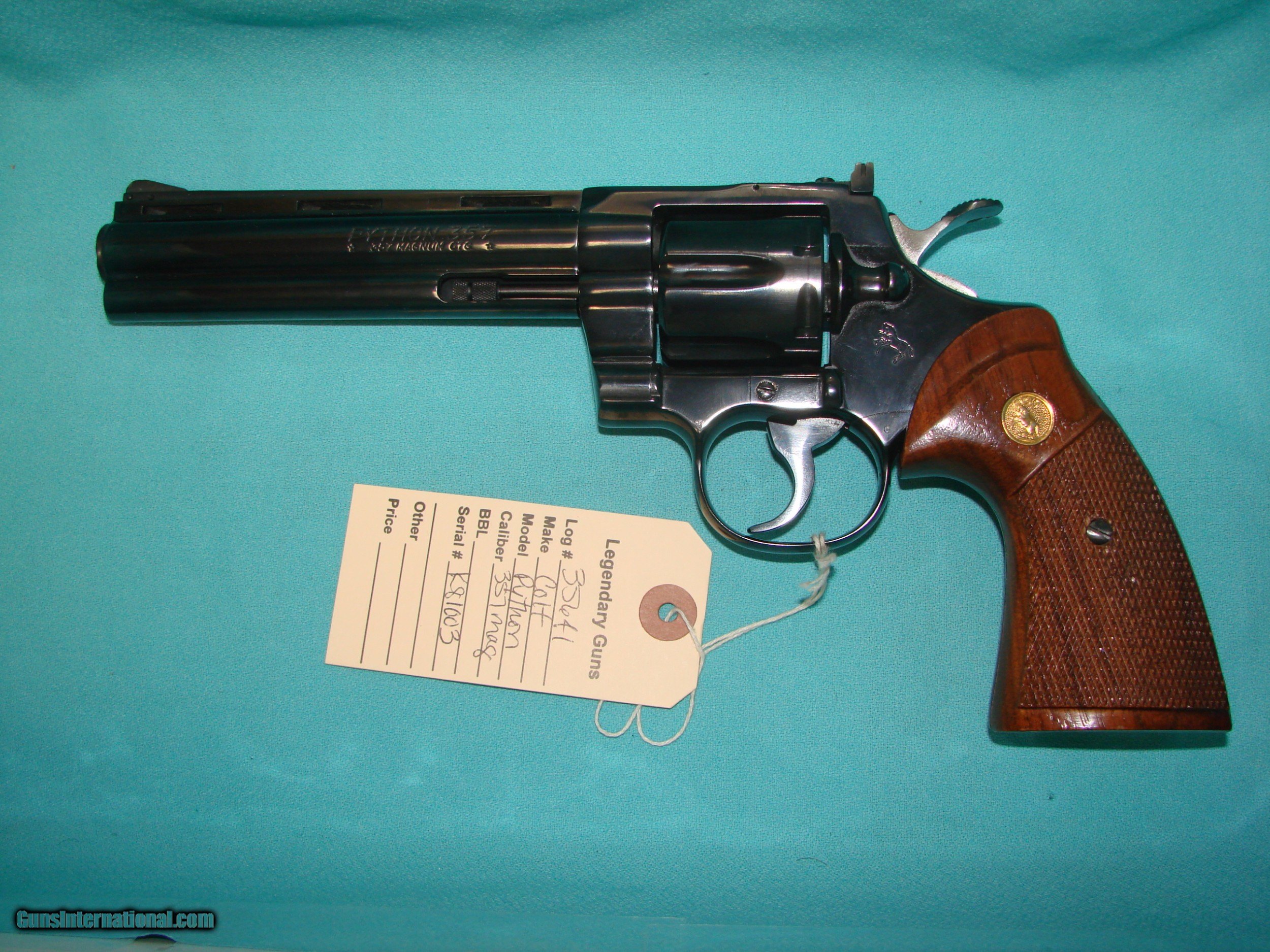 Description: Colt Python in 357Magnum with 6" barrel, blued finish wood grips. Gun is fired has some wear on backstrap and grips appear to be raplacements. Gun made in 1982 no box. Mechanically in very good condition. *Legendary Guns in Phoenix AZ 602-242-1195 Hours of operation Tuesday-Friday 10-6 Sat 10-5 Closed Sundays & Mondays *We accept all Major credit cards. We DO NOT charge an additional fee for Credit Cards. We also accept Postal Money orders or Certified Bank Checks{Check & Money order payments must arrive within 7 days of initial agreement and will be held for 3 days before items are shipped} *Shipping is $50 for rifles/shotguns {AK & HI Extra} and $35 for handguns. Arizona Residents Must Pay Sales Tax. We DO NOT ship Internationally. *We offer a 60 day layaway on purchases of $500 or more. Items require 1/3 of the total price as down payment which is NON-REFUNDABLE and you have 60 days to pay off the balance. *Please call or email with any questions and to confirm availability before buying. We are happy to answer all questions. All items listed are also for sale at our Phoenix location *We offer a 3 day inspection period on USED FIREARMS ONLY, We accept returns within the 3 day inspection period with NO REFUNDS ON SHIPPING CHARGES and a 10% restocking fee. *Trades are welcome for customers who can visit our Phoenix location, We DO NOT engage in online or mail in trades. SOLD Manufacturer: Colt Model: Python Caliber Info: 357 Magnum Condition: Used |