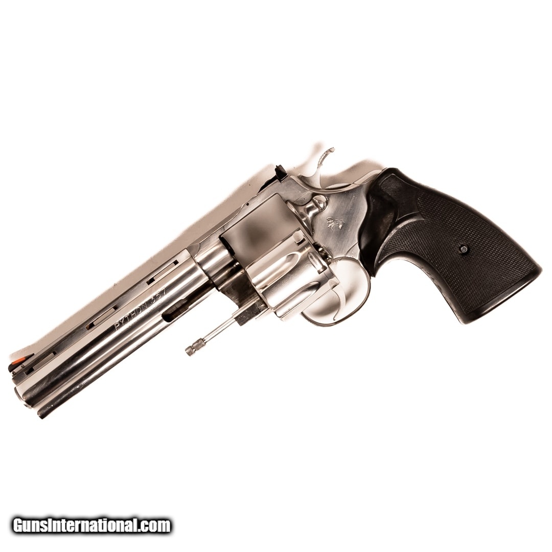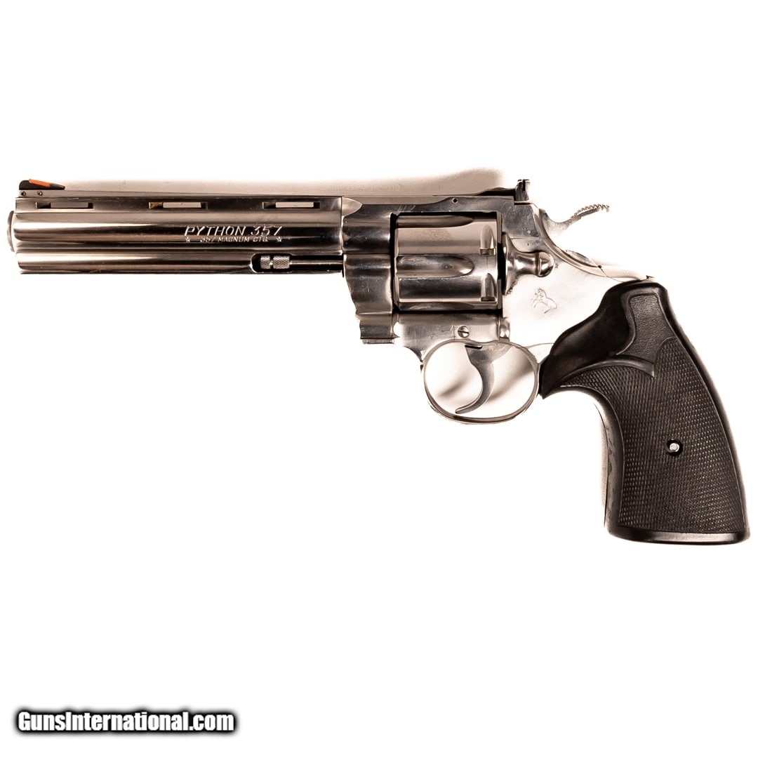 Description: Guns Listing ID: 693659 A classically designed revolver with a unique look and ultimate reliability, the Colt Python offers six rounds of 357 Mag. The Python is described by some as the finest production revolver ever made. Although popular, the Python was discontinued in 1999 after more than four decades of production. It has made an appearance in countless movies and television shows over the last five decades. Serial number: K96815 Get the best bang for your buck when you get a Certified Used Firearm . When you see the Certified Used stamp on any of our firearms, you can be confident that you’re getting exactly what you want – a gun only in very good to excellent condition and held to the highest quality standard. All Certified Used Guns come with a ‘no questions asked’ return policy . PLUS, ALL CERTIFIED USED GUNS SHIP FREE! SOLD Manufacturer: COLT Model: PYTHON Caliber Info: .357 MAG Condition: Used - Certified Barrels: 6 barrel Finish: STAINLESS |