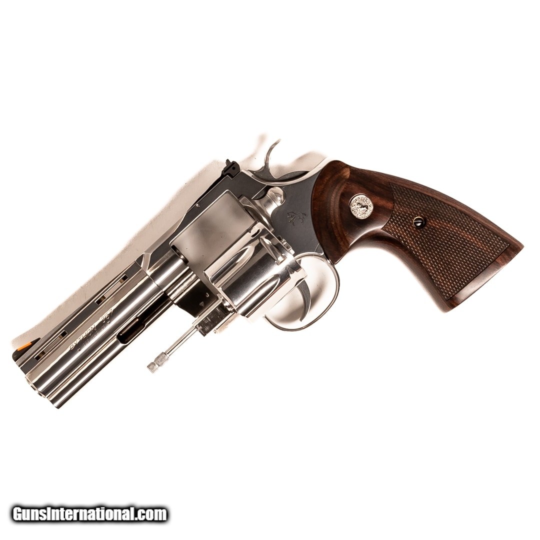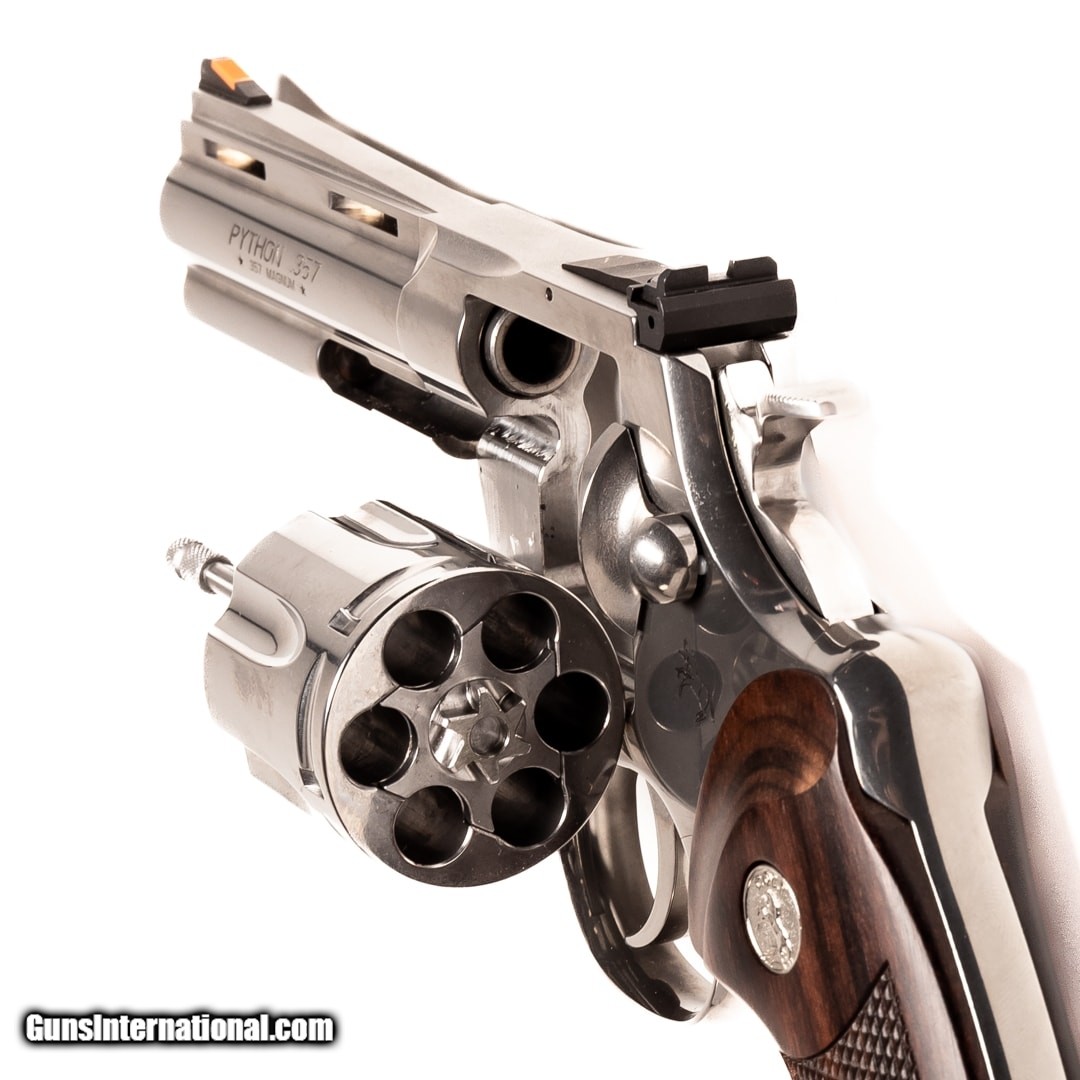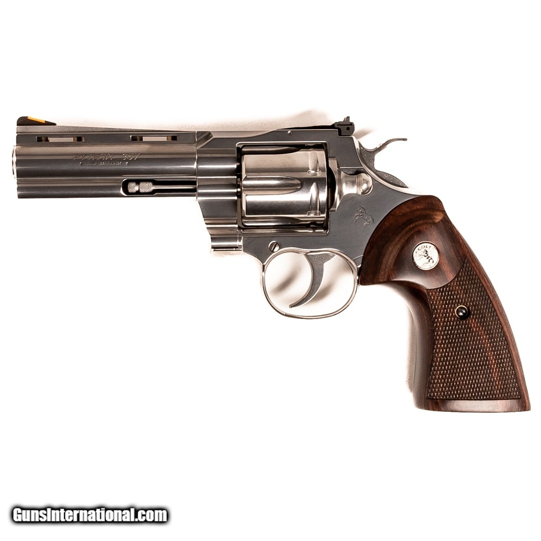Description: Guns Listing ID: 749221 A classically designed revolver with a unique look and ultimate reliability, the Colt Python offers six rounds of 357 Mag. The Python is described by some as the finest production revolver ever made. Although popular, the Python was discontinued in 1999 after more than four decades of production. It has made an appearance in countless movies and television shows over the last five decades. This Python Elite comes with the original case and owner‚‚s manual. Serial number: py261411 Get the best bang for your buck when you get a Certified Used Firearm . When you see the Certified Used stamp on any of our firearms, you can be confident that you’re getting exactly what you want – a gun only in very good to excellent condition and held to the highest quality standard. All Certified Used Guns come with a ‘no questions asked’ return policy . PLUS, ALL CERTIFIED USED GUNS SHIP FREE SOLD Manufacturer: COLT Model: Python Caliber Info: .357 MAG Condition: Used - Certified Barrels: 4.2 BARREL Finish: STAINLESS |