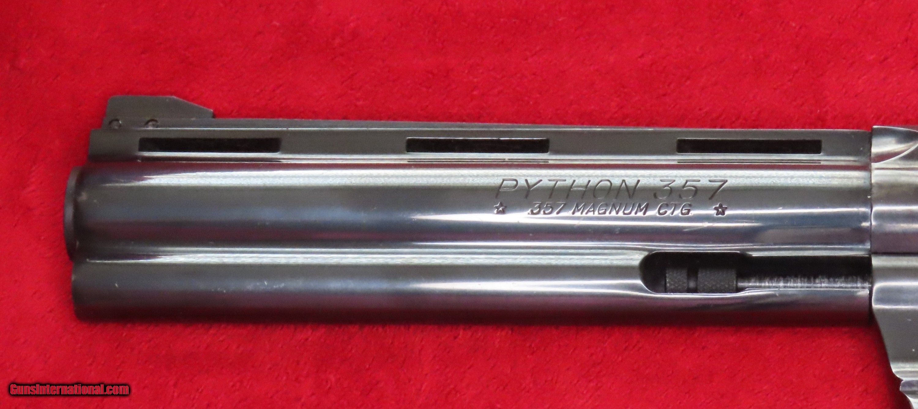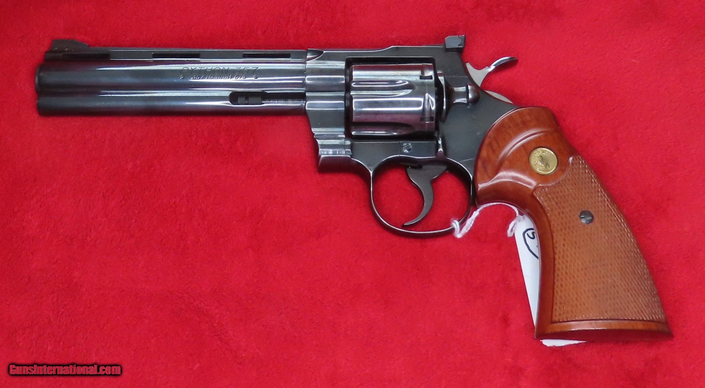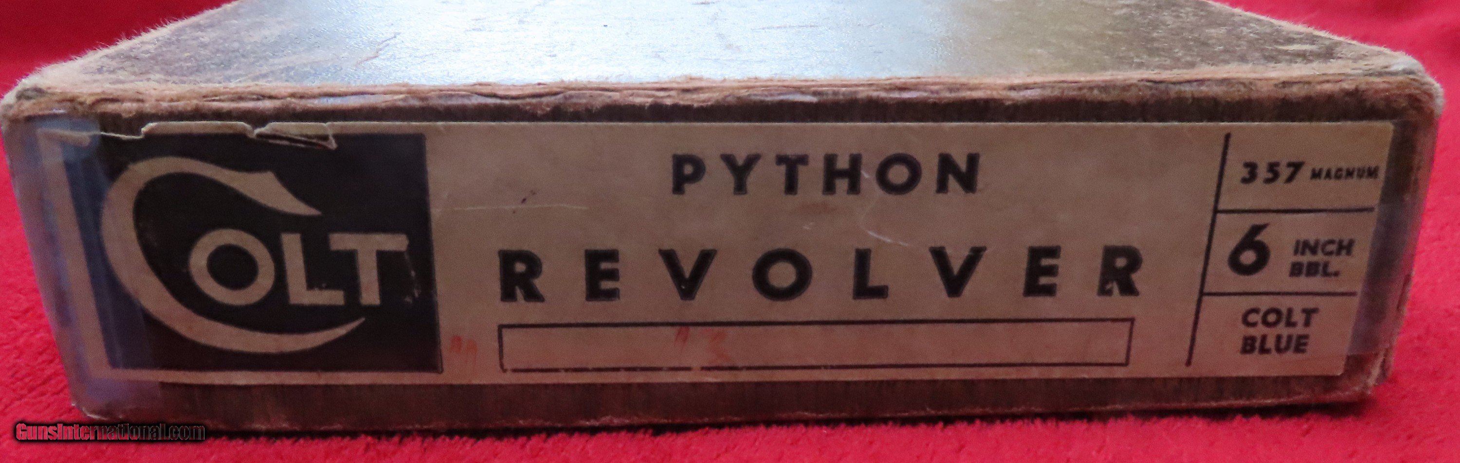 Description: Excellent condition 357 Mag. Colt Python with 6" barrel and excellent bore. Comes with box, papers and screwdriver. Made in 1971. $35.00 Shipping We Accept Visa, Mastercard, Checks, and Money Orders (With personal checks gun will be held until check clears) No Credit Card Fees We offer layaway with 1/3 down, 1/3 in 30 days, and balance in 60 days. . FFL required for shipping; All items shipped Priority Mail Please contact Gloria at 540-613-2077 (after 12 noon eastern time) or email jimsguns2020yahoo Thanks for Looking! SOLD Manufacturer: Colt Model: Python Serial Number: E25517 Barrel Length: 6 Condition: Excellent Bore Condition: Excellent |