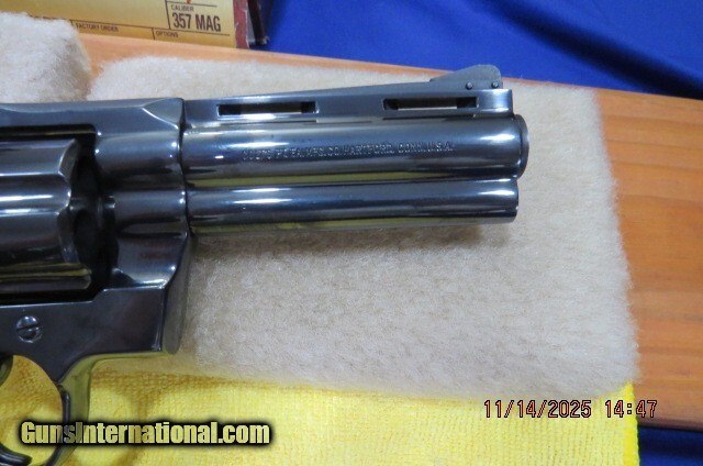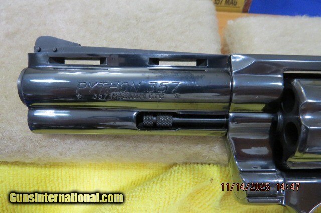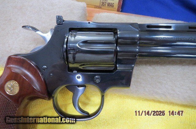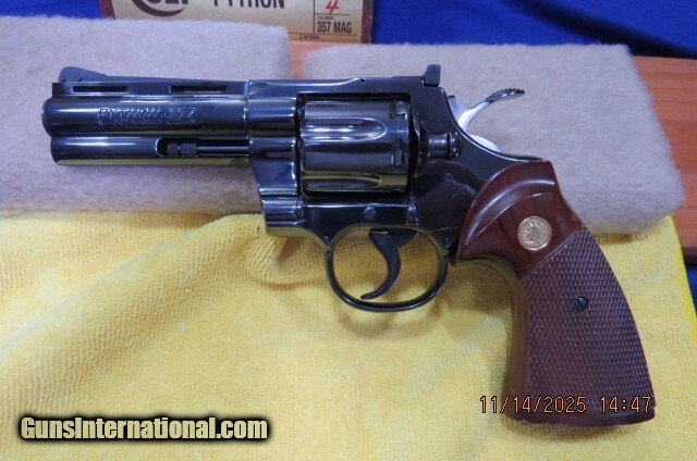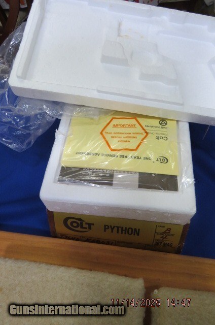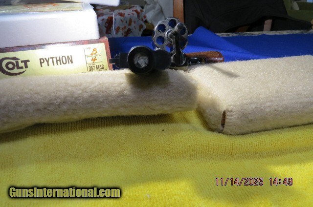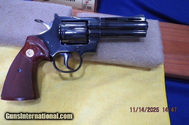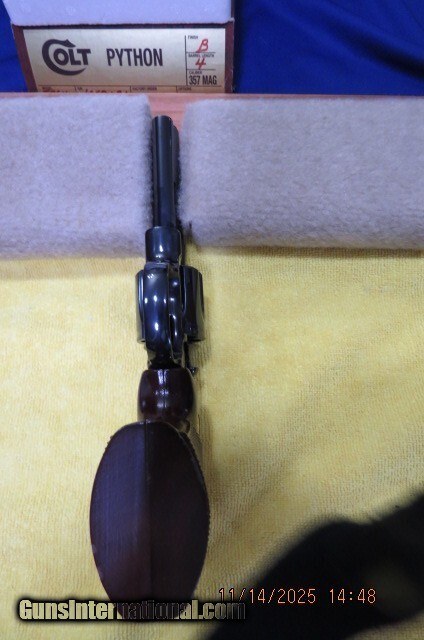 Description: COLT PYTON 357 MAGNUM, DEEP DEEP DARK BLUE BRIGHT FINISH, 4 inch Barrel, Serial number K580XX, Manufactured in 1981, in FACTORY BOX & ALL PAPER WORK. Does not appear to have ever been fired outside of the FACTORY TESTING. GEORGUS 44 YEAR OLD PYTHON UNTUCHED 100% ORIGINAL.SELLING AS USED WITH FACTORY BOX & PAPERWORK. Look closley at the beautiful pictured provided. Payment must be made by BANK CERTIFIED CHECK OR POSTAL MONEY ORDERS ONLY. I am a private collector selling out my collection of over 50 years. Payment must be received with in 10 days of sale or the item will be relisted. Shipping will be $85.00 shipped from me to your FFL dealer with a copy of my drivers license. If your FFL dealer will not accept it from an individual and it must go FFL dealer to FFL dealer, please add $55.00 for this service. Insurance will be avaliable for purchase at the rate of #1.55 per hundred if desired. All items are sold as is no warranty or returns. Handgun Caliber: .357 Magnum Manufacturer: COLT Model: PYTHON Serial Number: K580XX Barrel Length: 4 inch Condition: LIKE NEW Metal Condition: LIKE NEW Wood Condition: LIKE NEW Bore Condition: LIKE NEW Price: $4,095.00 Buy Now Contact Seller |