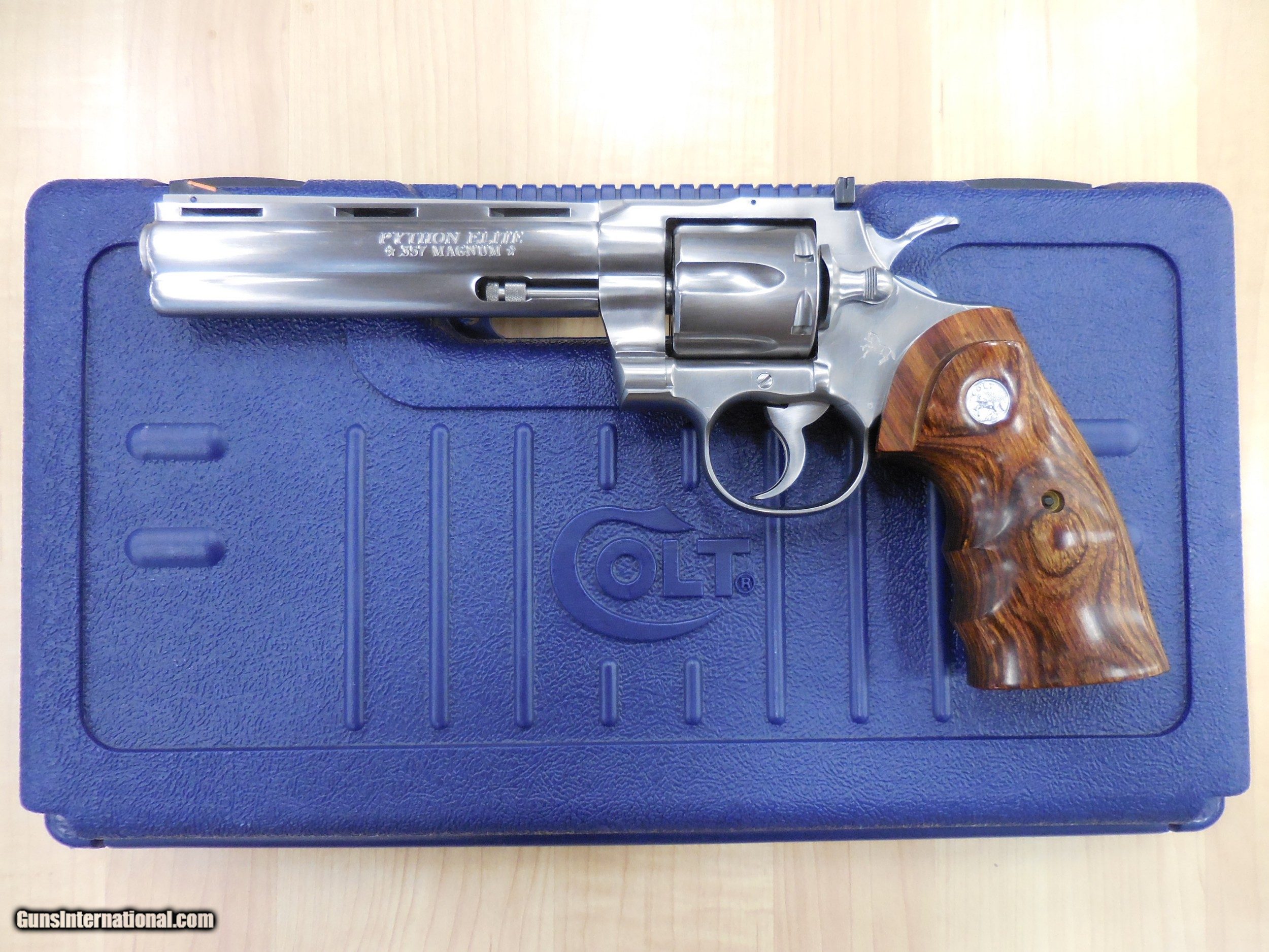 Description: HAVE A MINT COLT STAINLESS PYTHON ELITE 357MAG 6" BBL GUN LOOKS AS NEW IN ORIG BOX TEST TARGET MANUAL HANGING TAG ORIG WOOD GRIPS AS NEW POSSIBLE UNFIRED SER # PE021XX CALL TO ORDER AT 401 738 1889 SOLD |