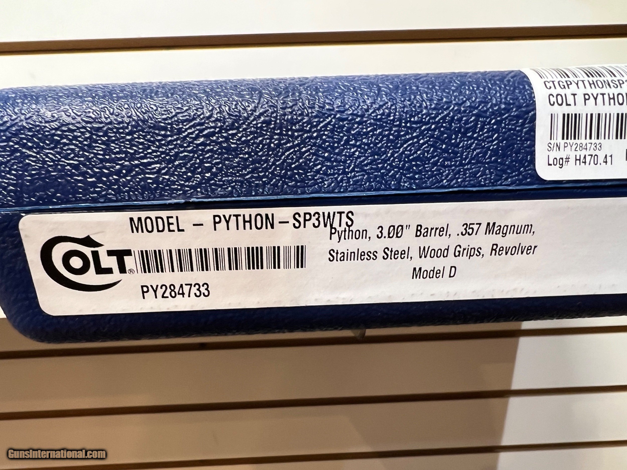 New Colt Python 3" Stainless 357 Magnum Wood Grips Model D