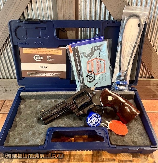 Description: Factory fired only, new in box 2003 Colt Python Elite faiths stunning Royal Blue Finish. 4 inch barrel, original case with end label, papers. Gun is perfect, hard pressed to find a turn line, gun never shot outside the factory. $25 shipping FFL to FFL Zelle, Cashiers, USPS MO, Credit/Debit add 3% SOLD Handgun Caliber: .357 Magnum |