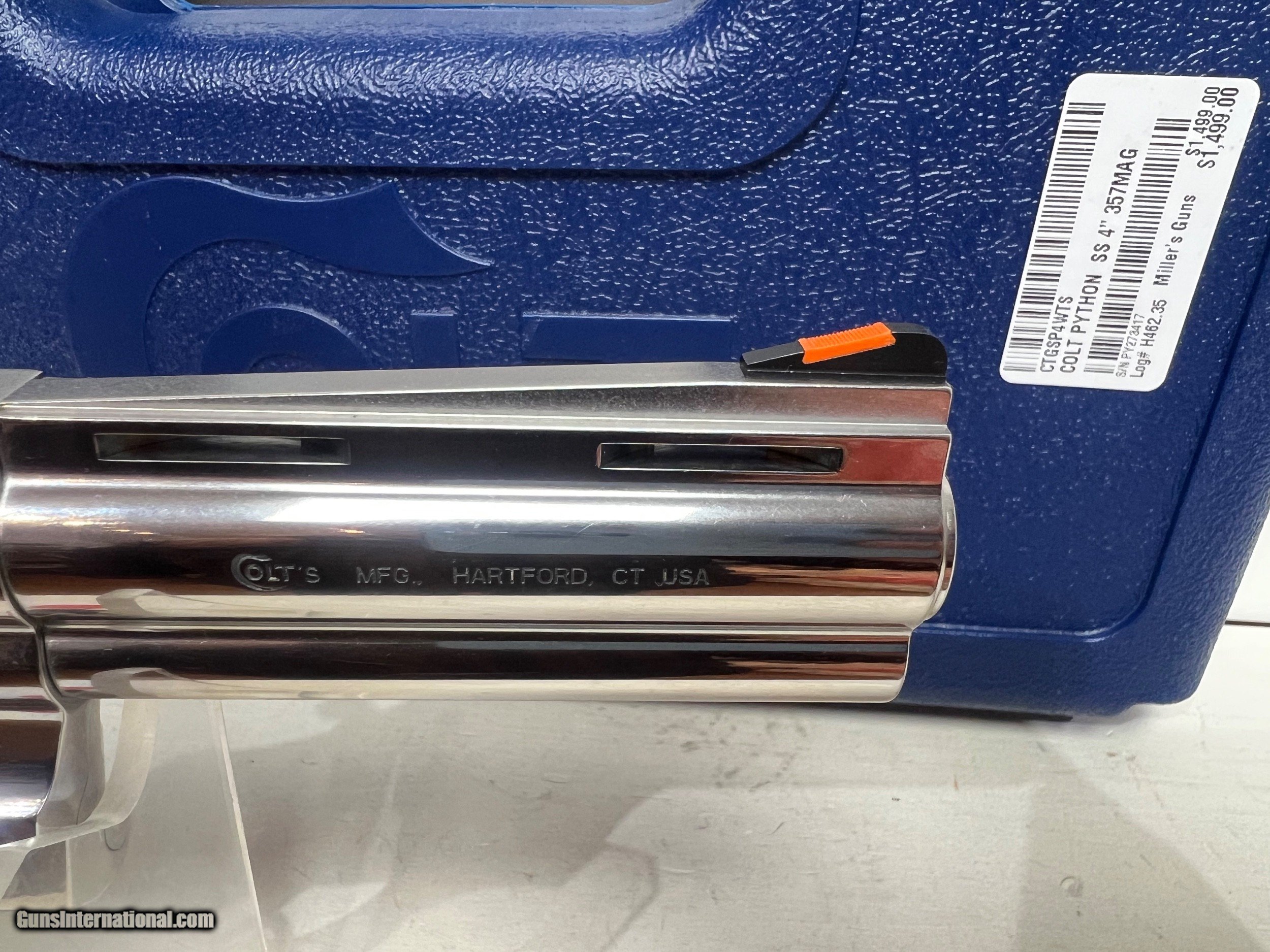 new Python SP4WTS, 357Mag, 4.25Bbl., SS new in hard plastic case