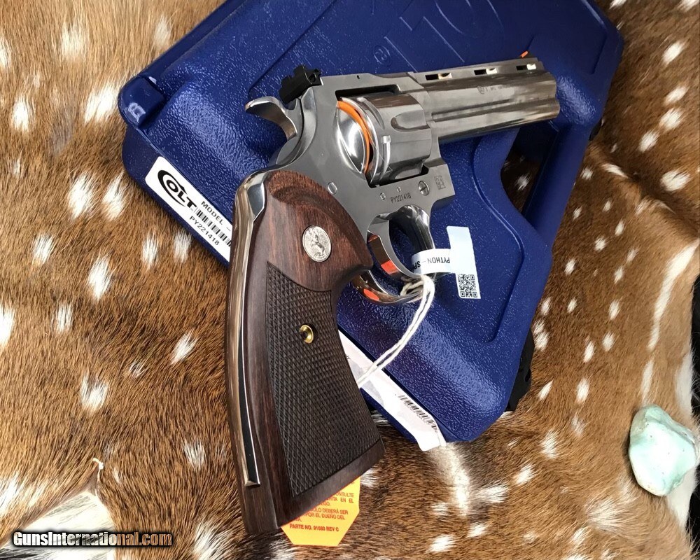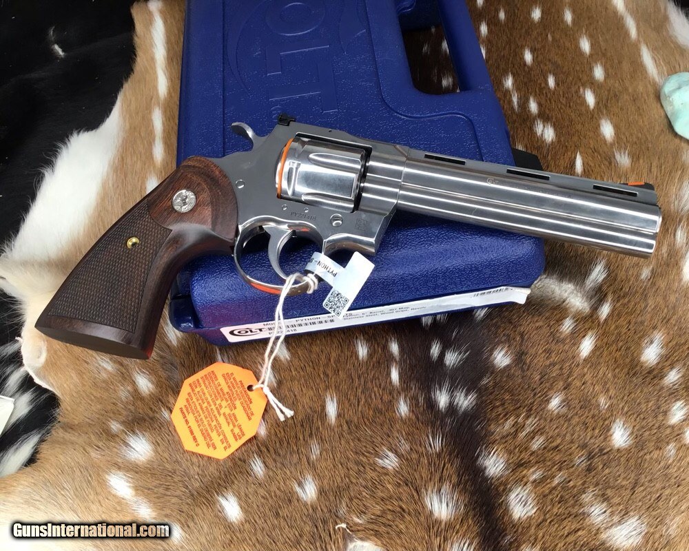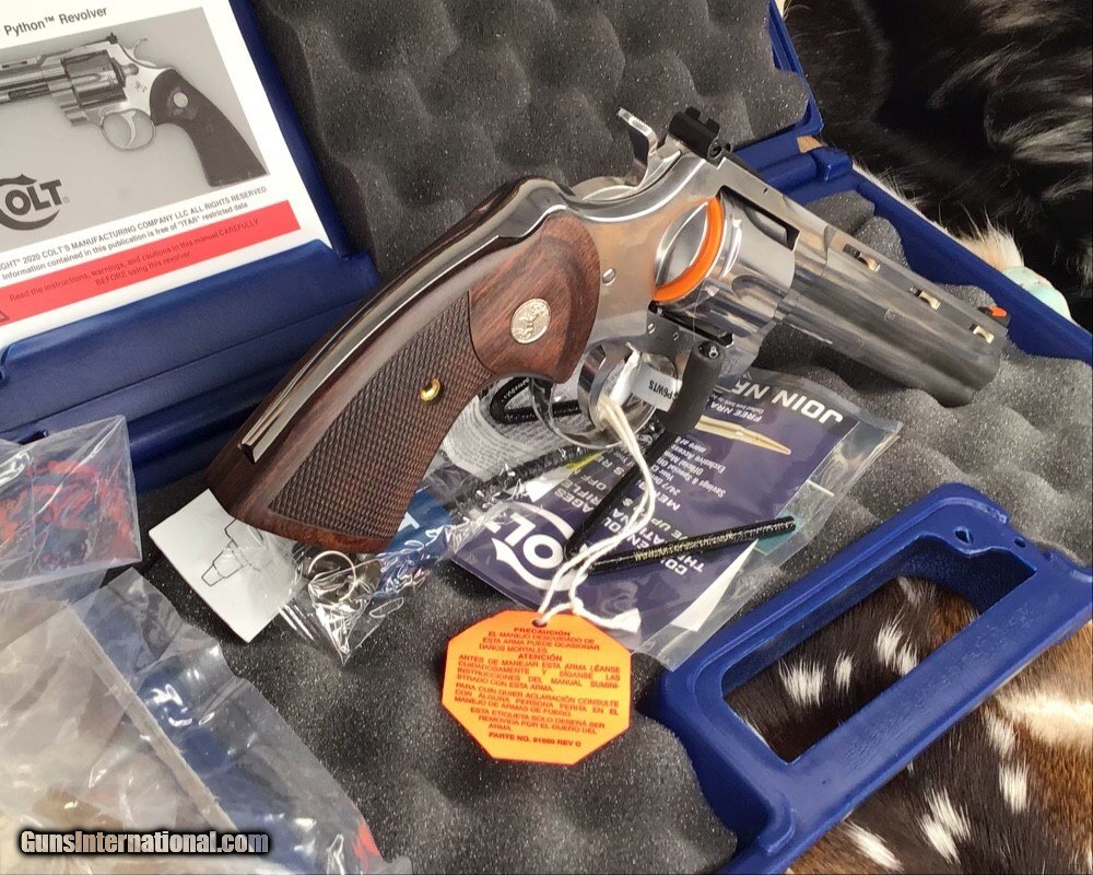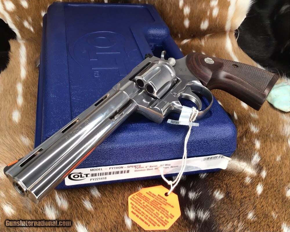 Description: NIB Colt Python wearing a six vented rib inch barrel, laminated wood grips, Target adjustable sights. In factory hardcase with manual and lock. Priced to sell fast. Add 3% if paying with credit card. God Bless America from a proud American, and a Viet Nam Vet , thankful for our freedoms.. paid for by the Blood ,Sweat and Tears of our brave men and women in uniform. Ten Below Firearms is a Veteran owned and operated business. We specialize in out of production models of high quality firearms. We love to ship! If you are out of state or can't make it to our store, just give us a call! Handguns normally ship for $30 and Long guns for $40 to $65 for extra length long guns. That's 2-3 day USPS Priority shipping, Delivery conformation and with tracking number. Optional Postal insurance is additional $1.70 per $100 and highly recommended. SOLD Handgun Caliber: .357 Magnum Manufacturer: Colt Model: Python Serial Number: PY221418 Barrel Length: 6 inch Condition: New Metal Condition: New Wood Condition: New Bore Condition: New Action: DA/SA Rib: Vented rib Sights: Adjustable target Manufacture Date: 2021 Item Location: Mn |