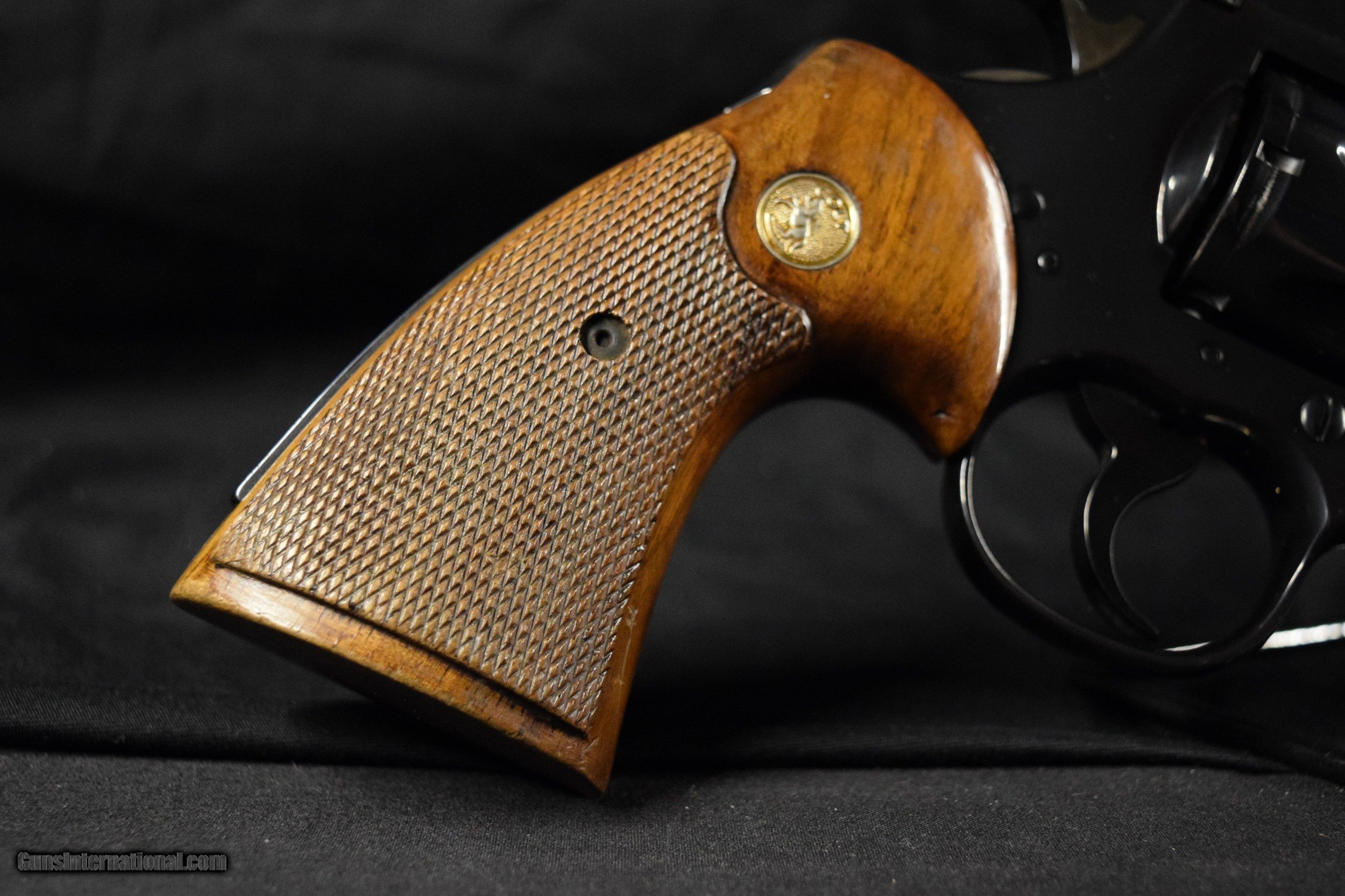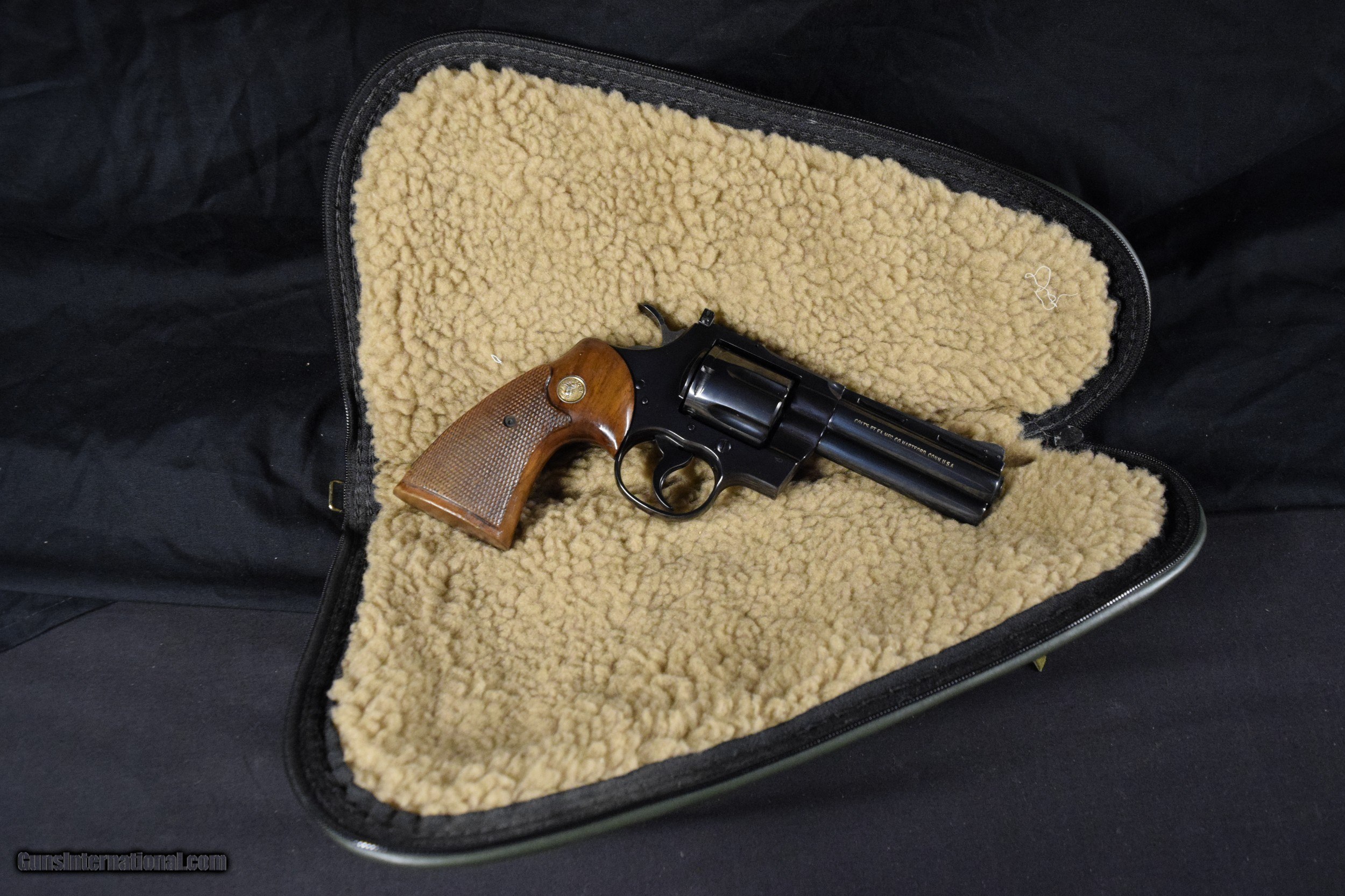 Description: This 1974 Colt Python is equipped with a 4” barrel, ramped front & adj rear sights, walnut grip, and a blued finish. This package comes with a soft case. The overall condition is excellent with little to no handling marks. Pre-Owned - 1974 Colt Python DA .357 Mag. 4" Revolver