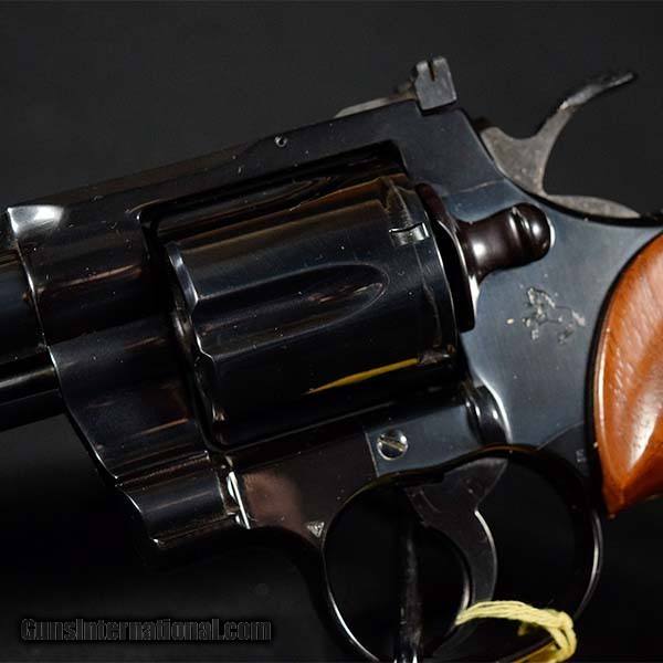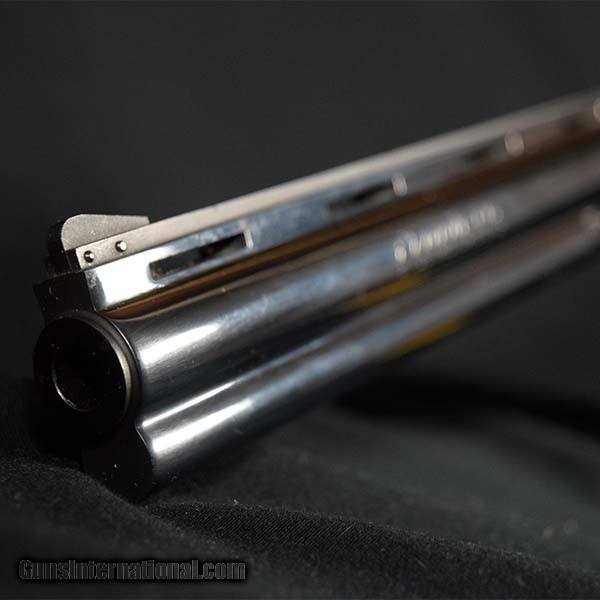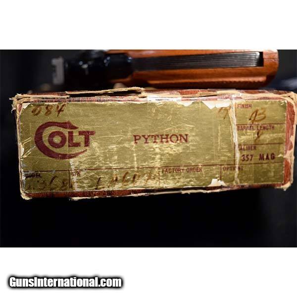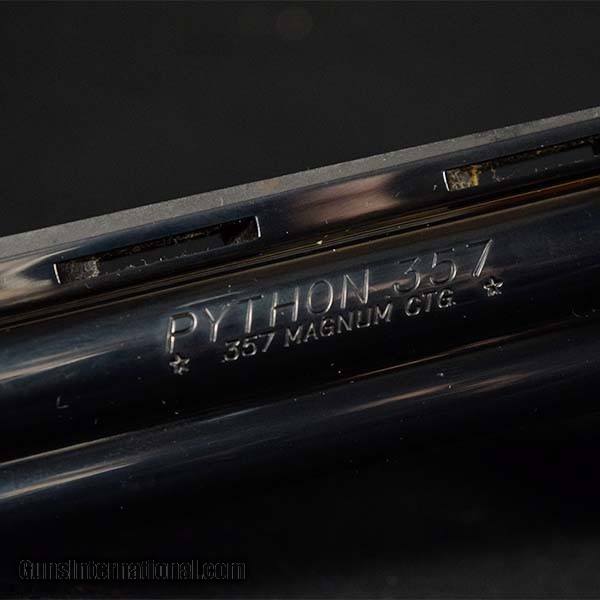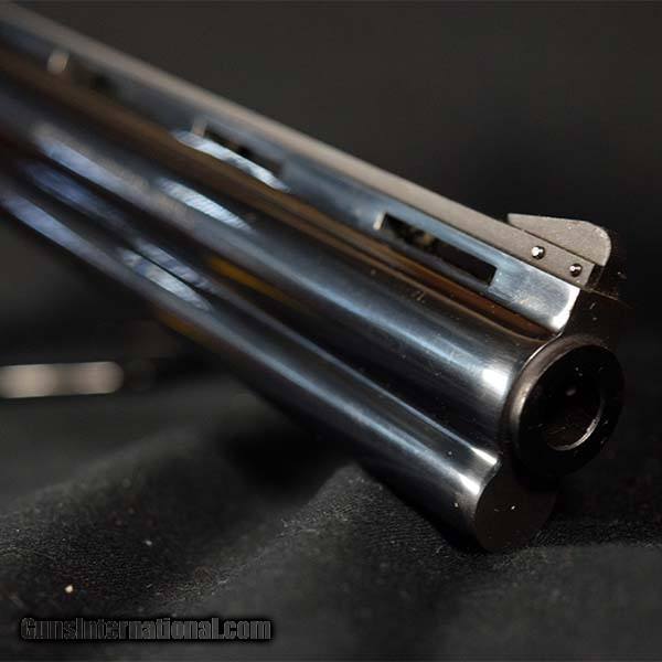 Description: This 1980's Colt Python comes with its original box! It comes equipped with a 8" barrel, blued finish, checkered walnut grips and adjustable rear/ramp front sights. Overall the condition is excellent with little to no wear from use present on the item. Pre-Owned - Colt Python 1980 Double Action 357 Magnum 8'' Revolver